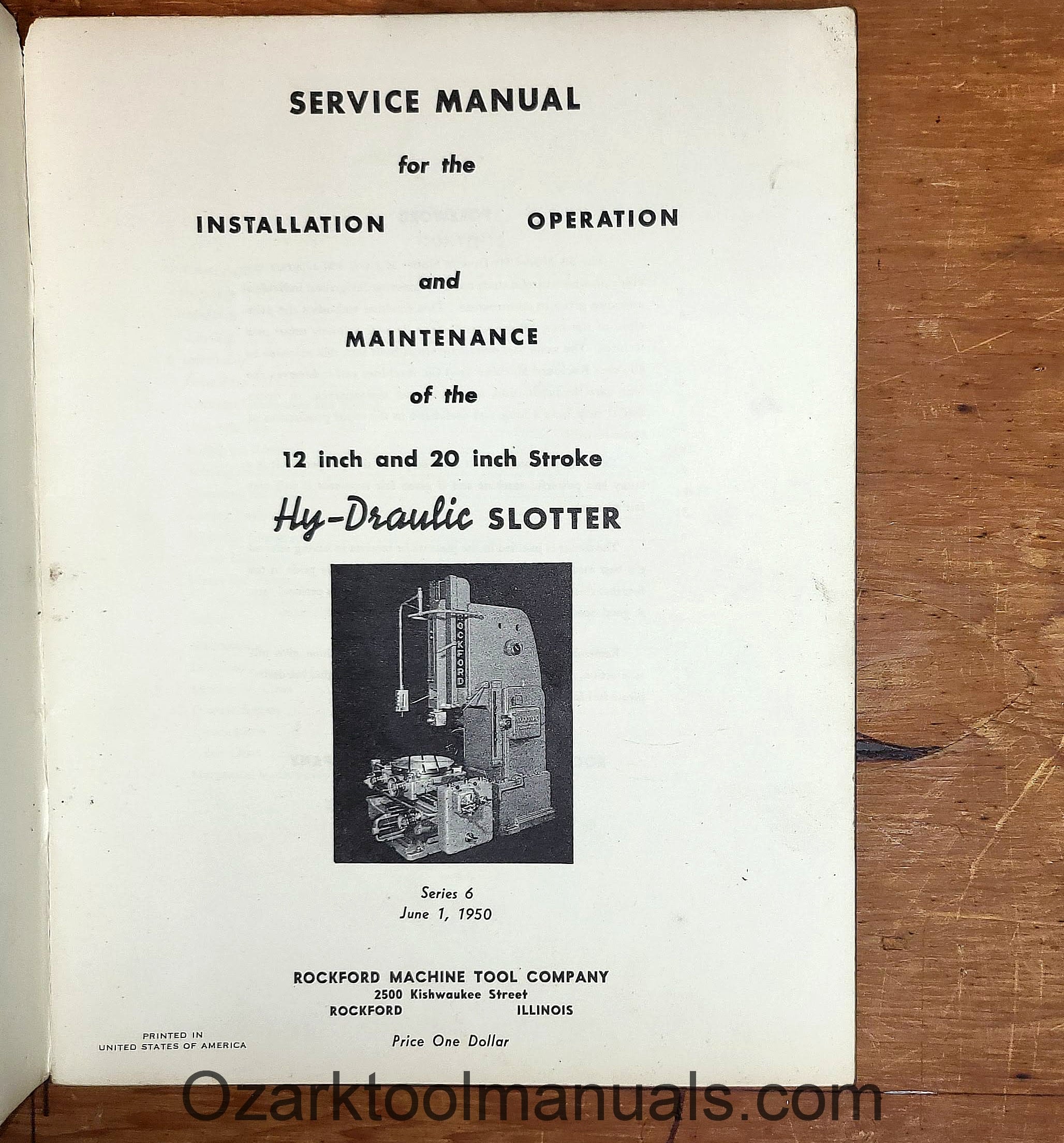 Delve into the essential resource for maintaining and operating your hydraulic slotting machine with this original Service Manual for Installation, Operation, and Maintenance of the 12-Inch and 20-Inch Stroke Hydraulic Slotter. Designed to assist professionals in achieving precision and efficiency, this manual provides extensive details presented by Rockford Machine Tool Company.