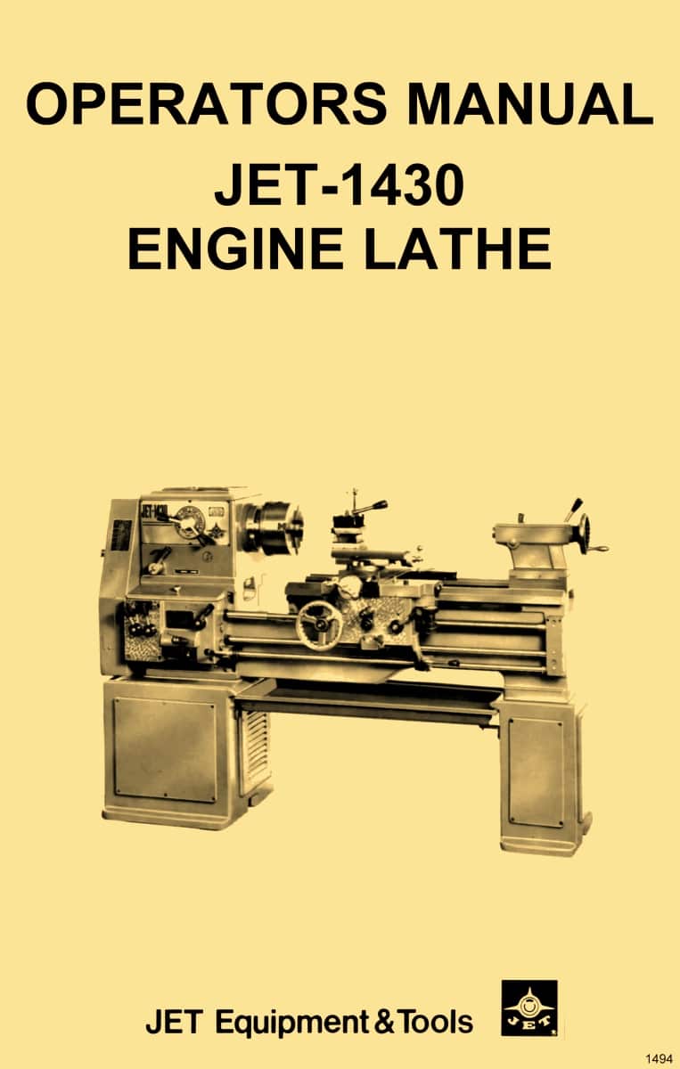 This is a reproduction, not a photocopy, of an original JET Tools 1430 Metal Lathe Operators Manual. This manual is small and basic, but it does contain necessary and helpful information. The manual describes all the handles and functions of the lathe, and has paragraphs on how to operate specific sections like the apron. The manual does have all threading charts, and it does have a wiring diagram. It shows some gear configuration diagrams for the headstock and the quick change gear box.