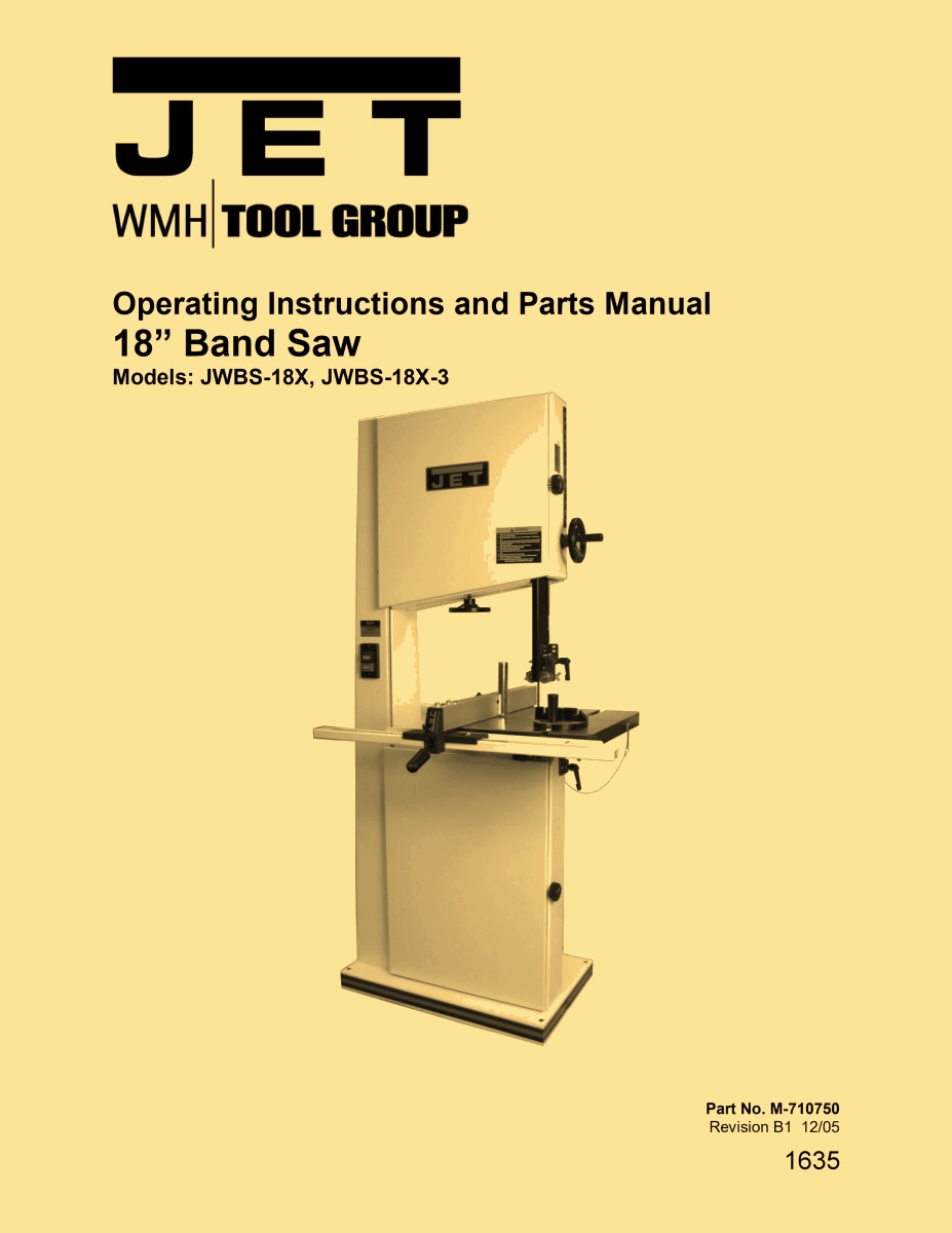 This is a reproduction, not a photocopy, of an original JET 18″ JWBS-18X and JWBS-18x-3 Woodworking Band Saws Owner Operator’s & Service Parts Manual for stock numbers 710750 and 710751. This manual contains information on set-up, the band saw specifications, proper operating instructions, changing blades, and various adjustments. The manual also contains a clear set of explosive view parts diagrams of all the parts with parts list and descriptions.