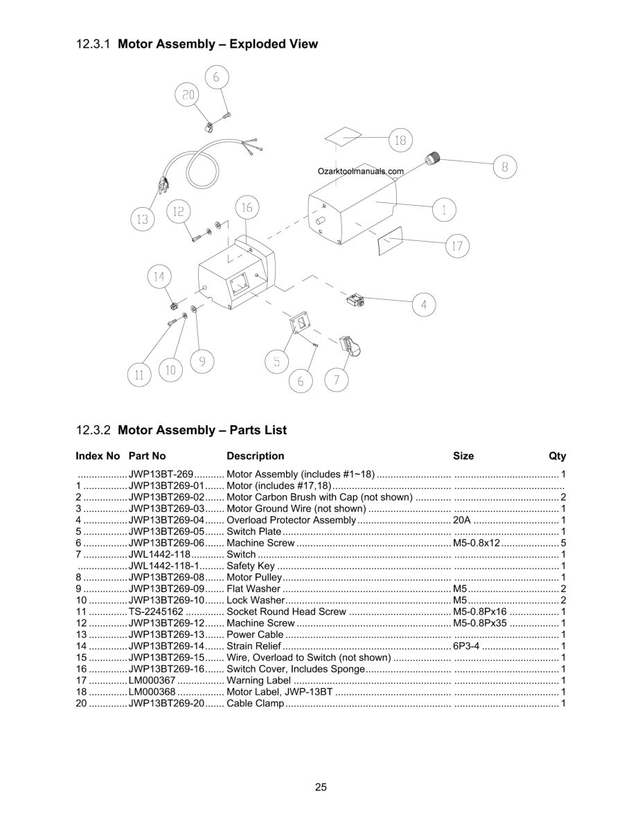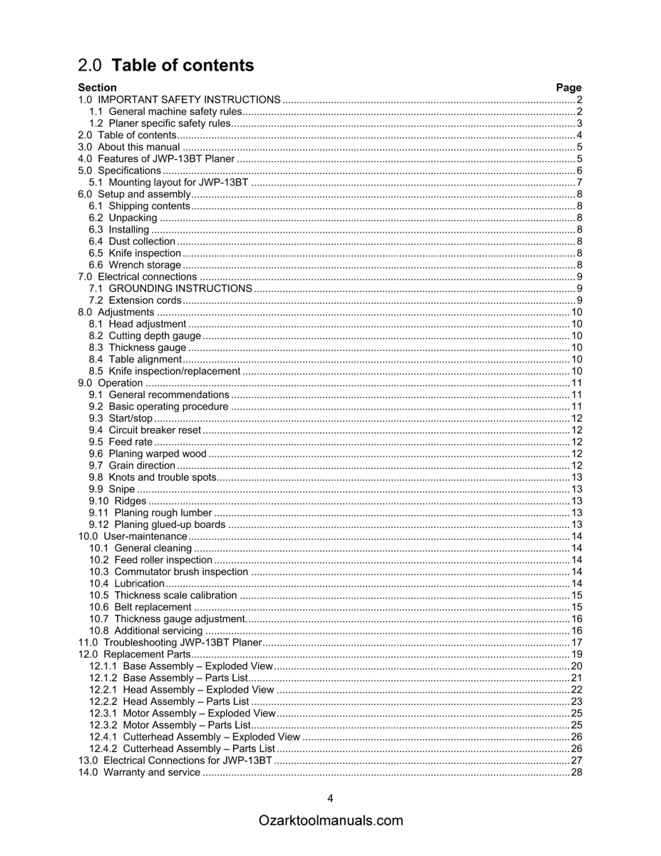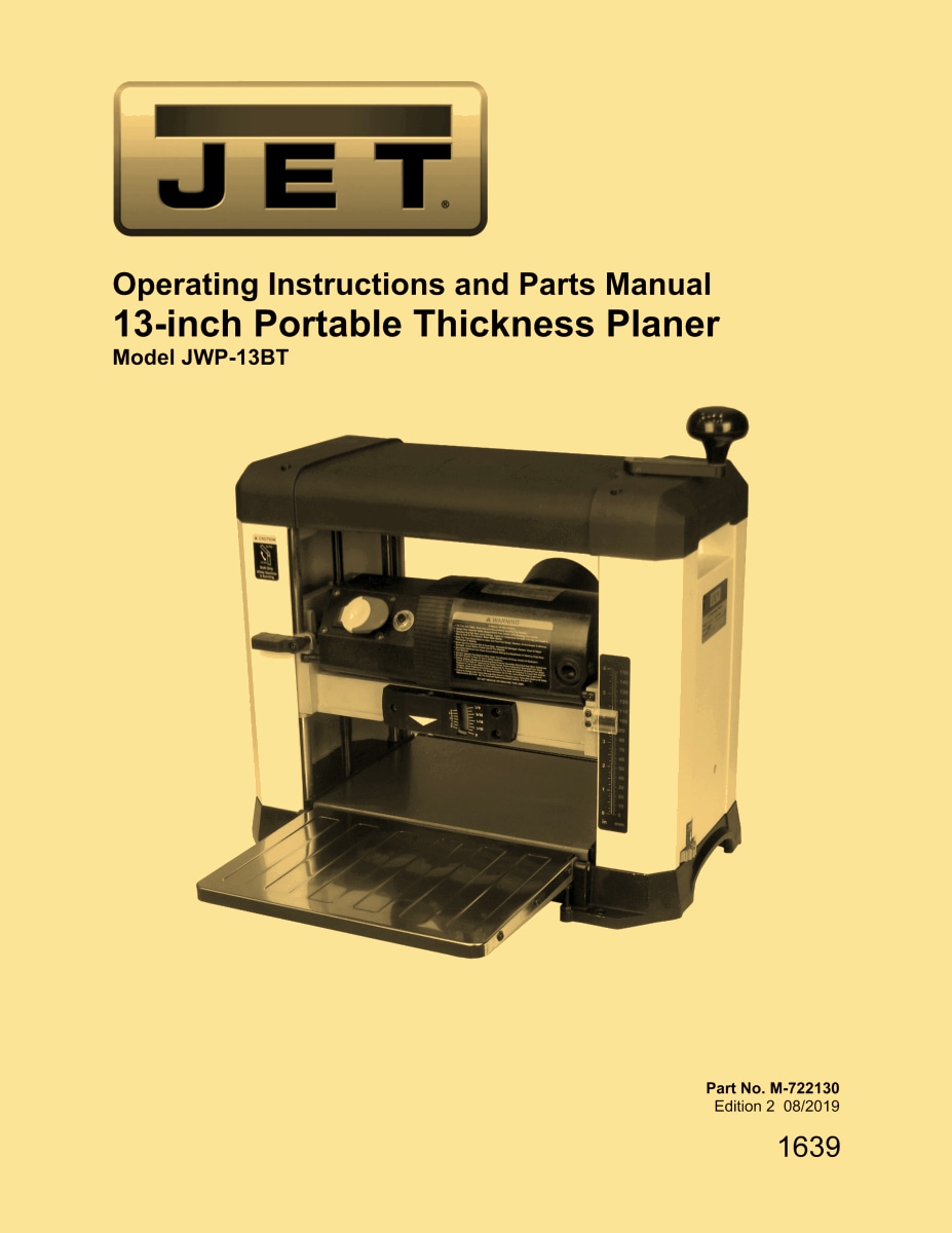 JET JWP-13DX Wood Planer Operator’s Instruction Service Parts Manual