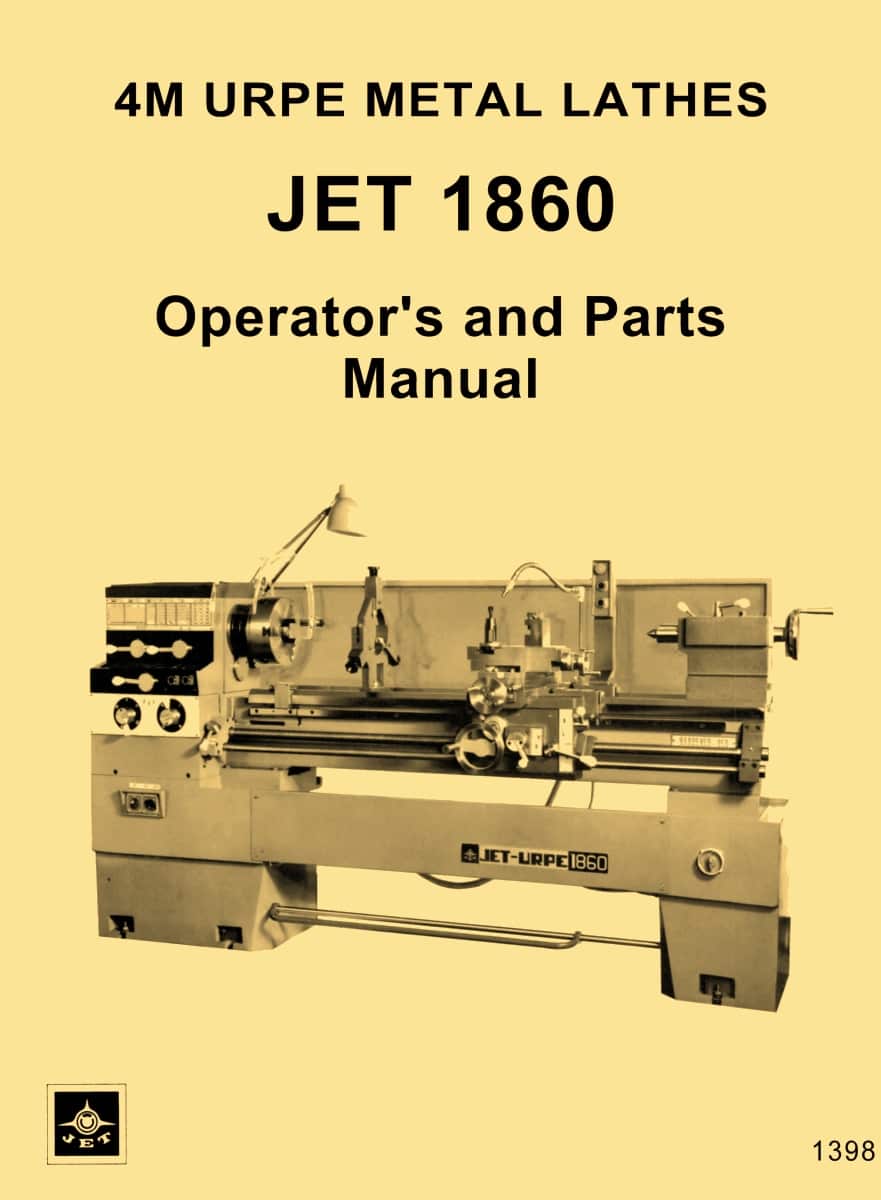 This is a reproduction, not a photocopy, of an original JET Tools URPE 4M series 1860 (U) Metal Lathe Owner Instructions and Parts Manual. These lathes were made in Spain under the URPE name, and offered as the Models 750, 1000, 1500 and 2000 – these being the distances between centers. The lathes were imported into the US under different names including JET Tools.