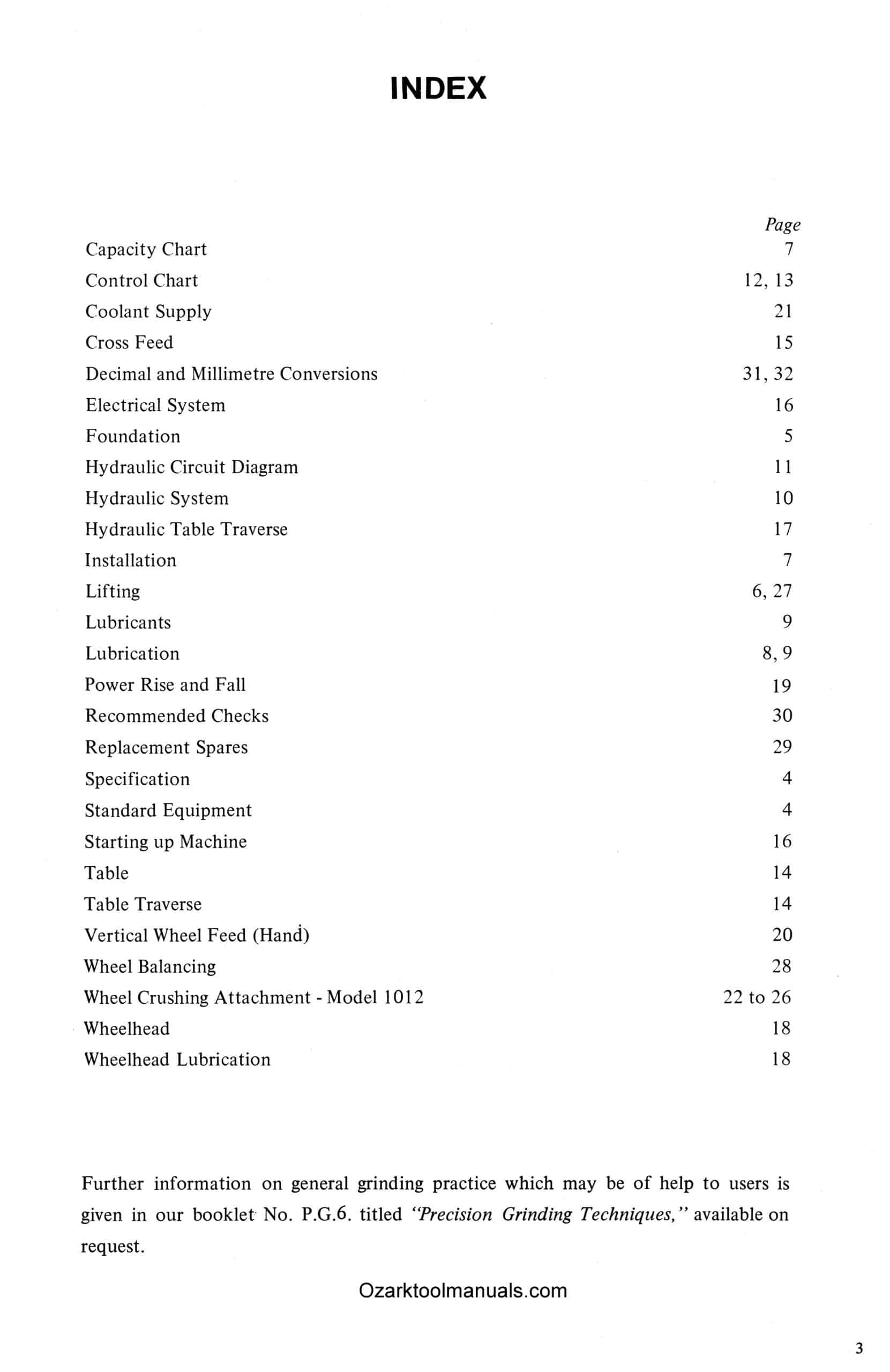 This is a reproduction, not a photocopy, of an original Jones & Shipman Models 1011 and 1012 Toolroom Surface Grinder Owner’s and Operator’s Instruction Manual. This manual contains on proper installation and the surface grinder specifications. The manual includes information about proper lubrication, operation of the hydraulics, and a hydraulic circuit diagram. It contains operating instructions and instructions on how to adjust the thrust adjustment for the spindle bearings on these Jones & Shipman surface grinders. This manual also covers the crushing attachment.