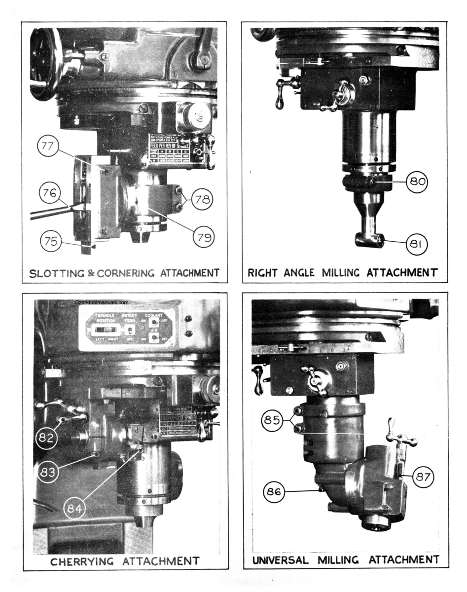 This manual explains how to adjust almost everything from the spindle bearings to the table screw thrust bearings. It explains how to even remove the spindle bearings. A lot of information on adjustments, and then a lot of information on the operation of the 2D rotary head. They expected the operator to be experienced when running a Kearney & Trecker mill like this one.