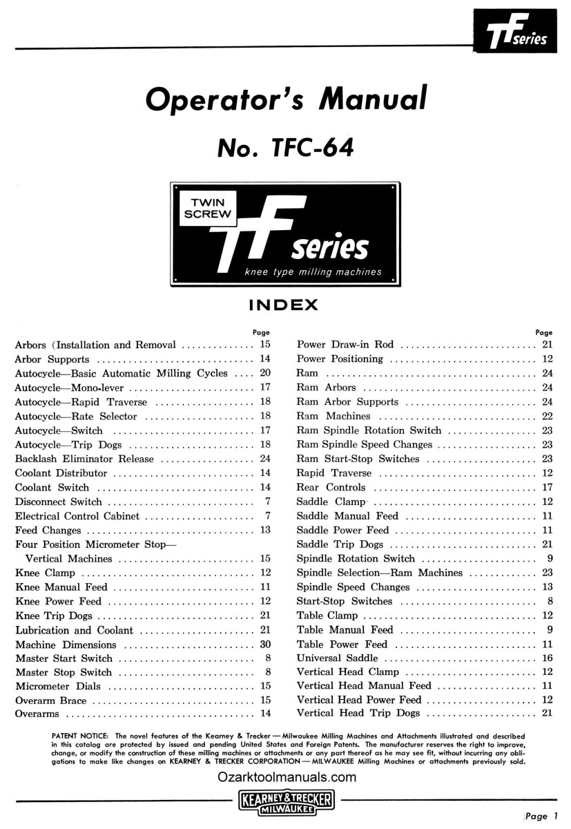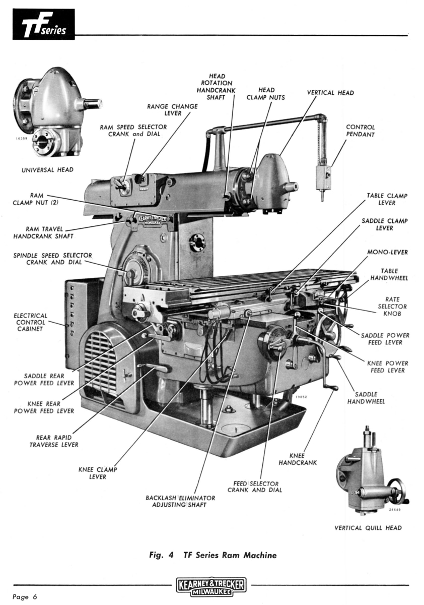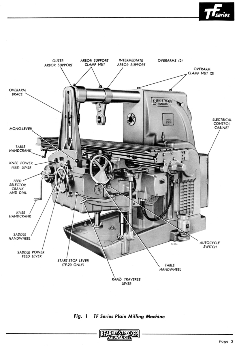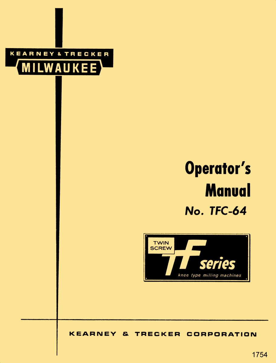 We also have installation and parts manuals for these Kearney & Trecker Mills as well. We also have a newer TF series manual for operation as well. Feel free to text us photos of your machines to verify.