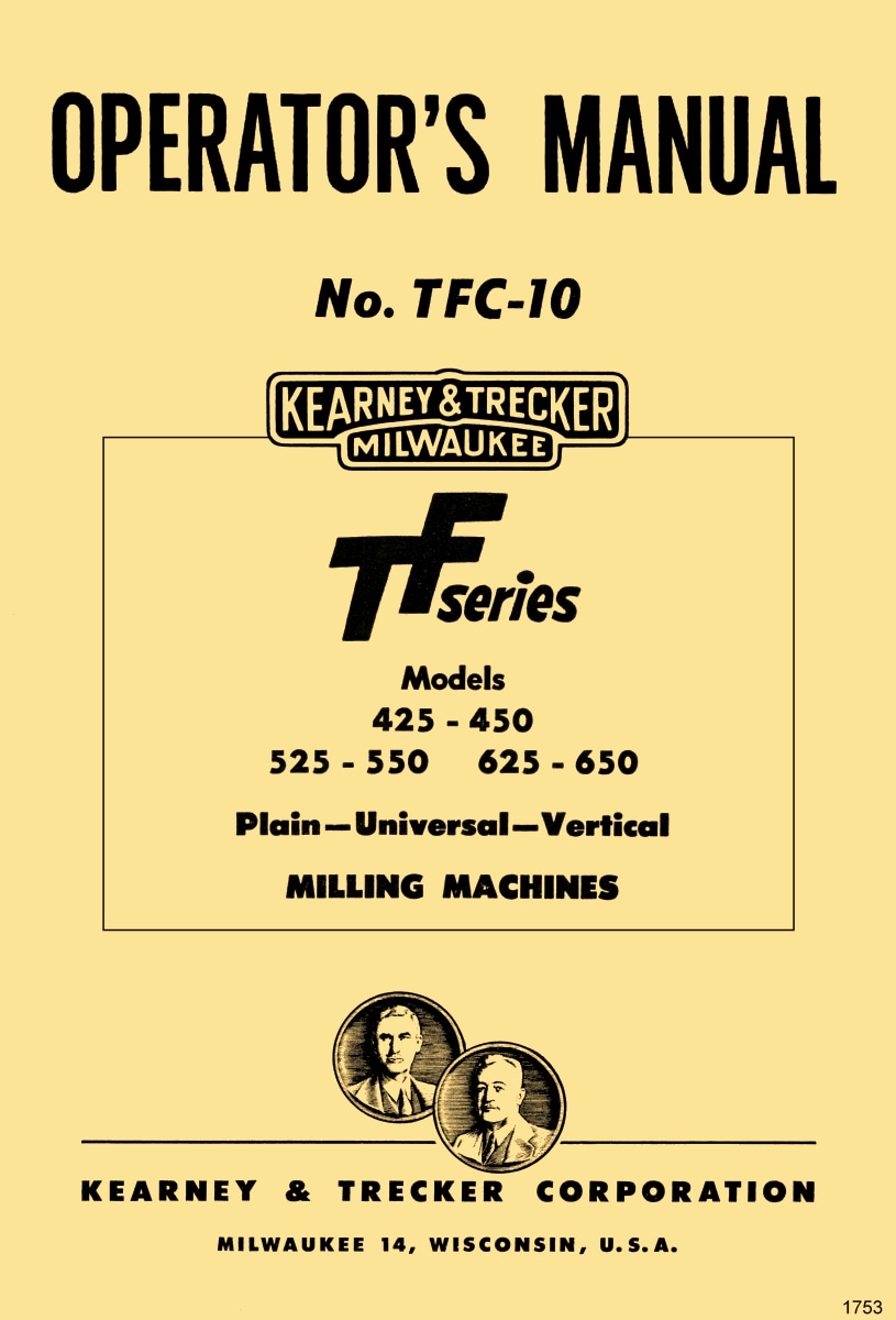 Kearney & Trecker Milwaukee TF Series Horizontal Vertical Milling Machines TFC-10 Operator Manual