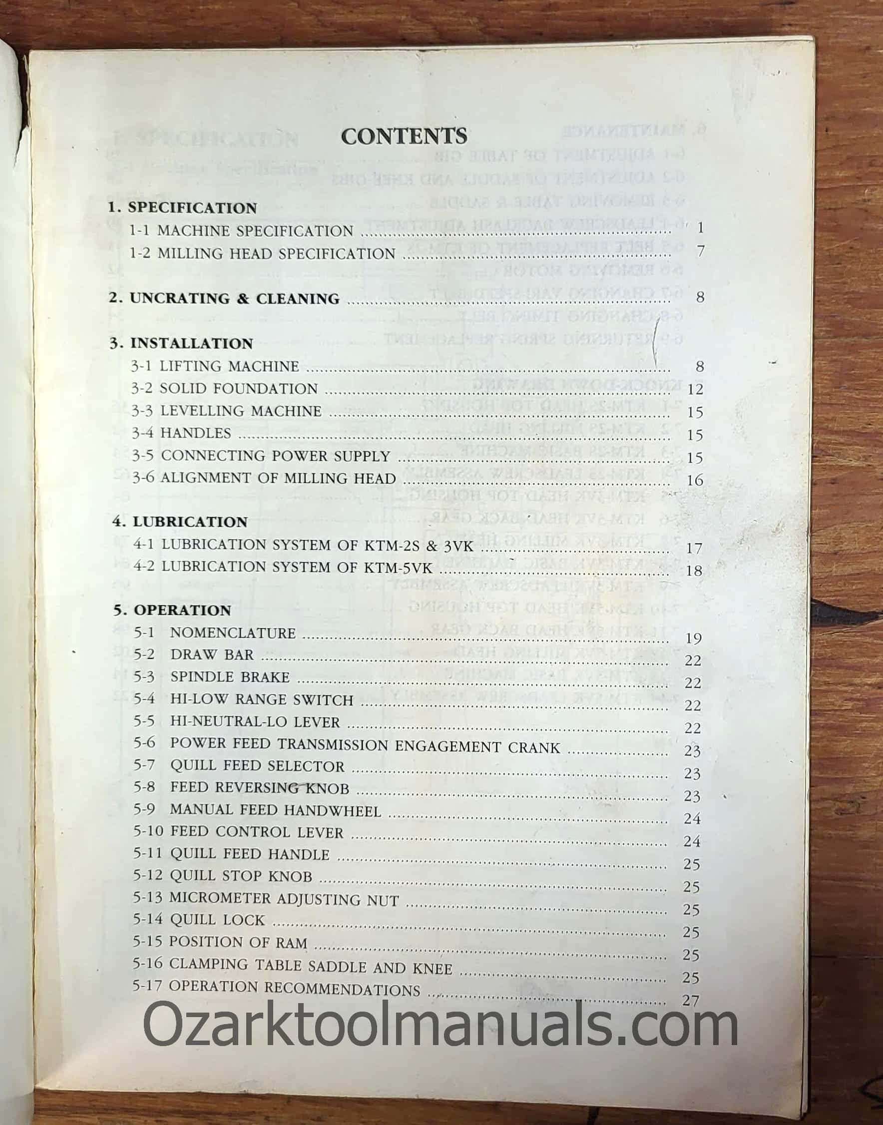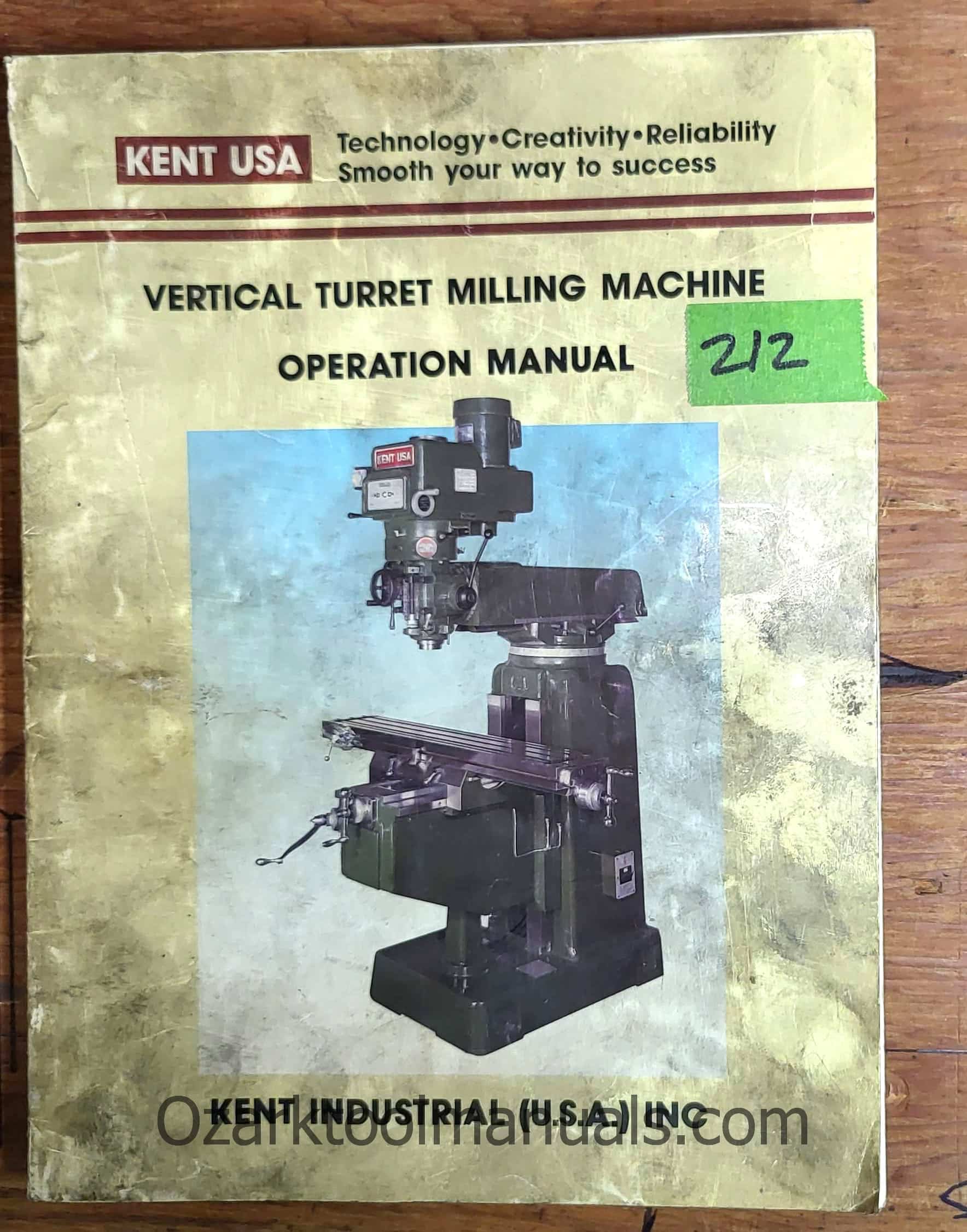 Kent USA KTM-2S KTM-3VK KTM-5VK Milling Machine Operator Instruction Service Parts Manual