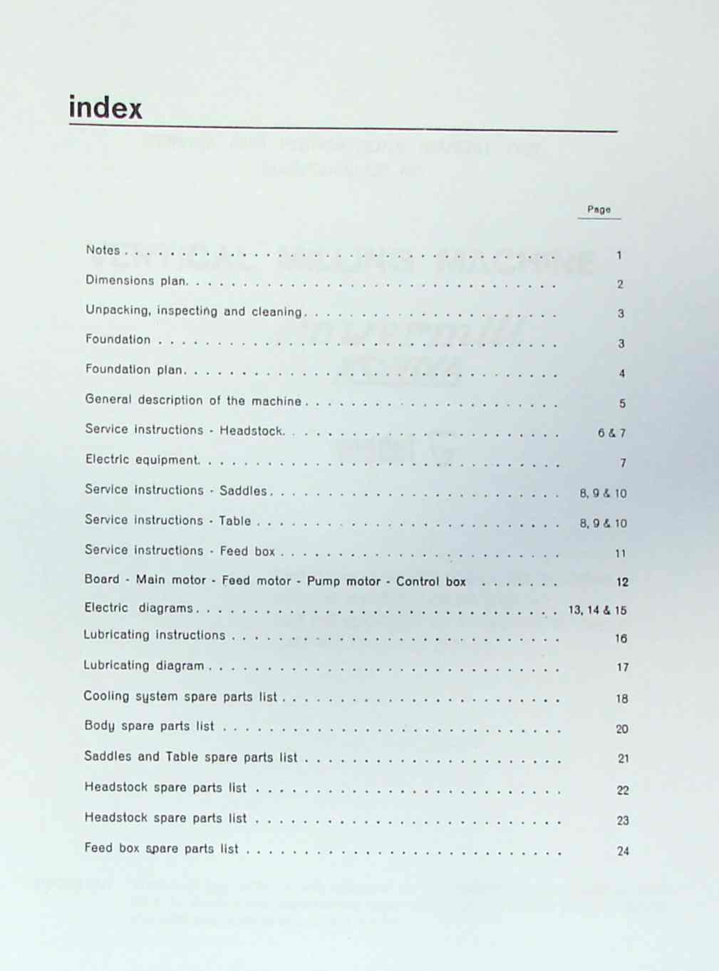 This is a reproduction, not a photocopy, of an original Kondia Powermill Model G Vertical Milling Machine Instructions and Parts Manual. This manual contains information on lubrication, maintenance, adjustments, operations, and controls. It also contains cross-sectional diagrams of all the parts of the machine. Please read contents below.