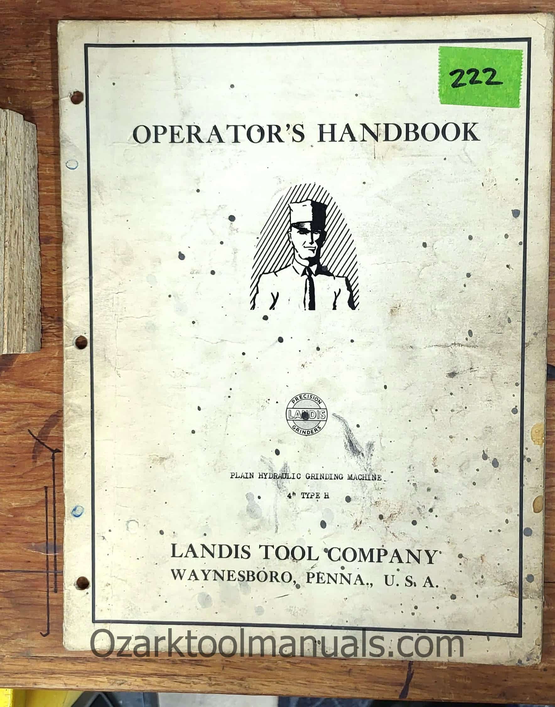 Landis 4″ Plain Hydraulic OD Grinder Type H Operator Instruction Manual