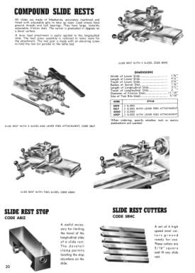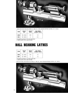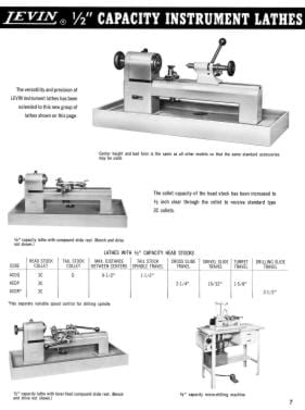 This is a reproduction, not a photocopy, of an original Levin Precision Lathes and Micro Drills Catalog. This catalog contains information on precision lathes, micro-drilling machines, micro drills, micro-drill presses, contact lens equipment, and micro-accessories. It list the catalog codes, specifications, and standard equipment sold with the machines. This catalog is a great resource for these fine machines.
