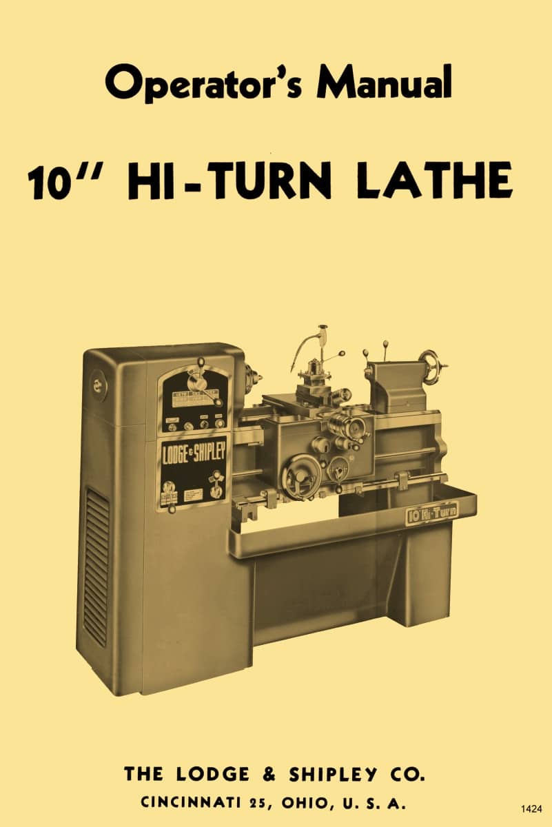 This is a reproduction, not a photocopy, of an original Lodge & Shipley 10″ Hi-Turn Metal Lathe Operators Manual. This manual includes the proper operating procedures, and instructions for making adjustments to various parts of the lathe, like the spindle bearings and brake, and the carriage feed clutch. The manual also has information on how to use the taper attachment. This Lodge & Shipley manual contains instructions on how to set up stops and templates for coping with this lathe.