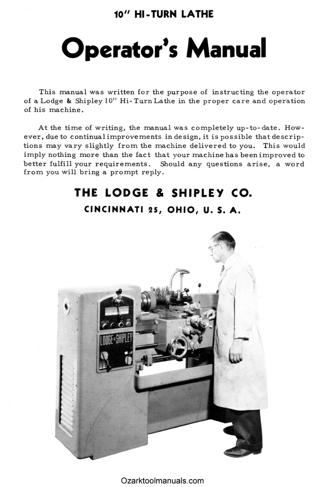 Lodge & Shipley 10″ Hi-Turn Metal Lathe Owner Operator Instructions Service Manual