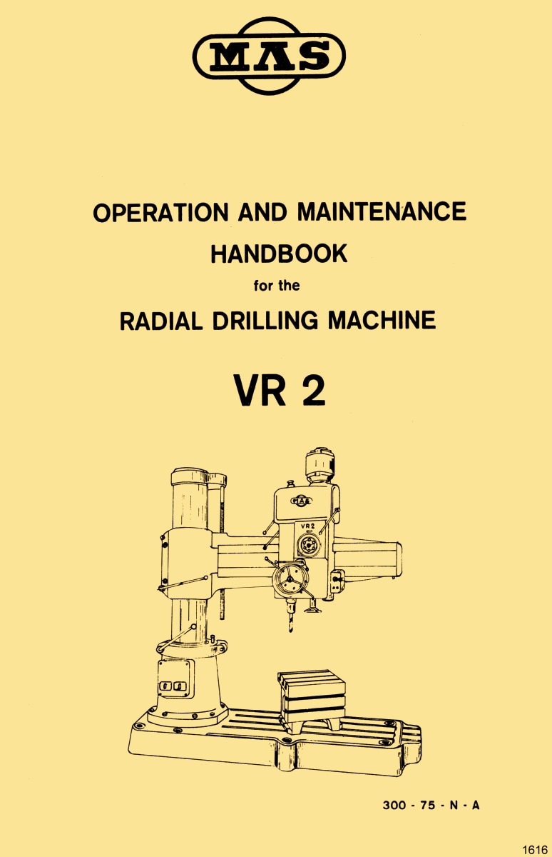 This is a reproduction, not a photocopy, of an original MAS VR2 Radial Drill Owner’s, Operator’s and Parts Manual this drill was sold as a Supermax as well as other brands when imported. This manual contains the radial drill specifications, safety instructions, operating instructions, and maintenance. The manual also has proper lubrication instructions and wiring diagrams. The manual includes a complete set of cross-sectional view diagrams of the parts for this MAS Radial Drill.