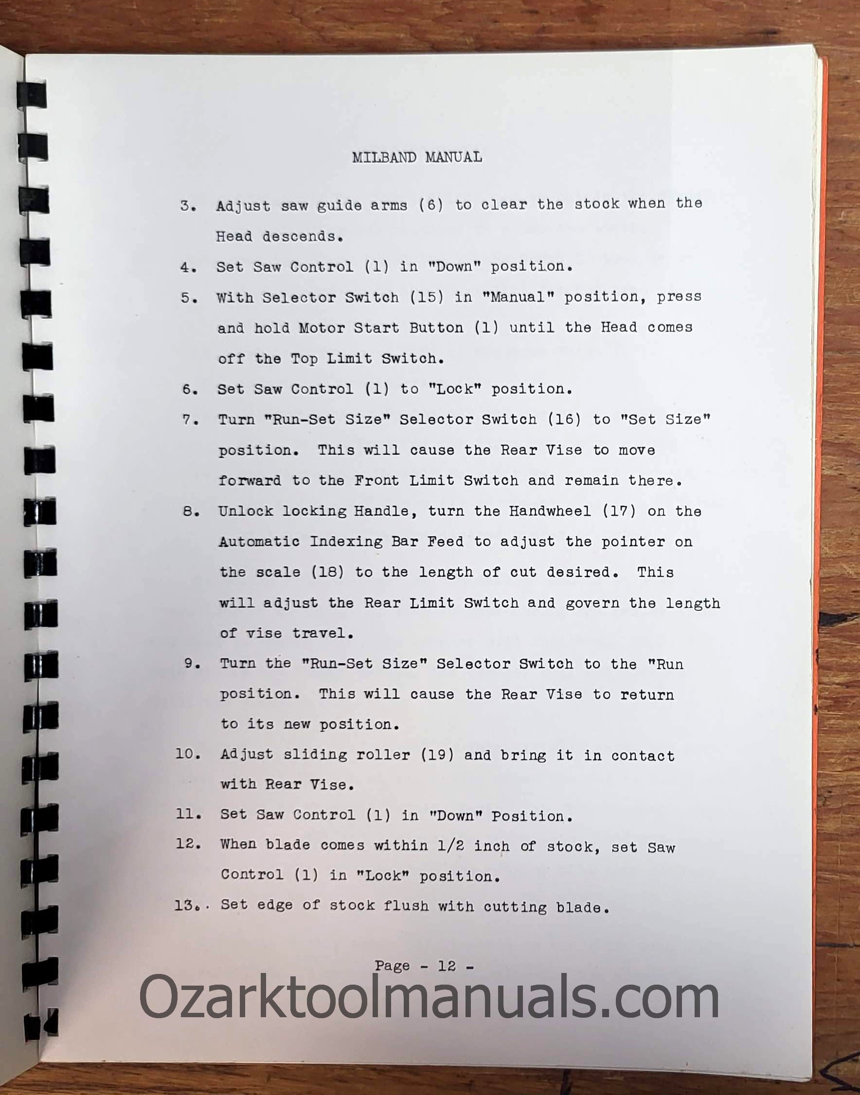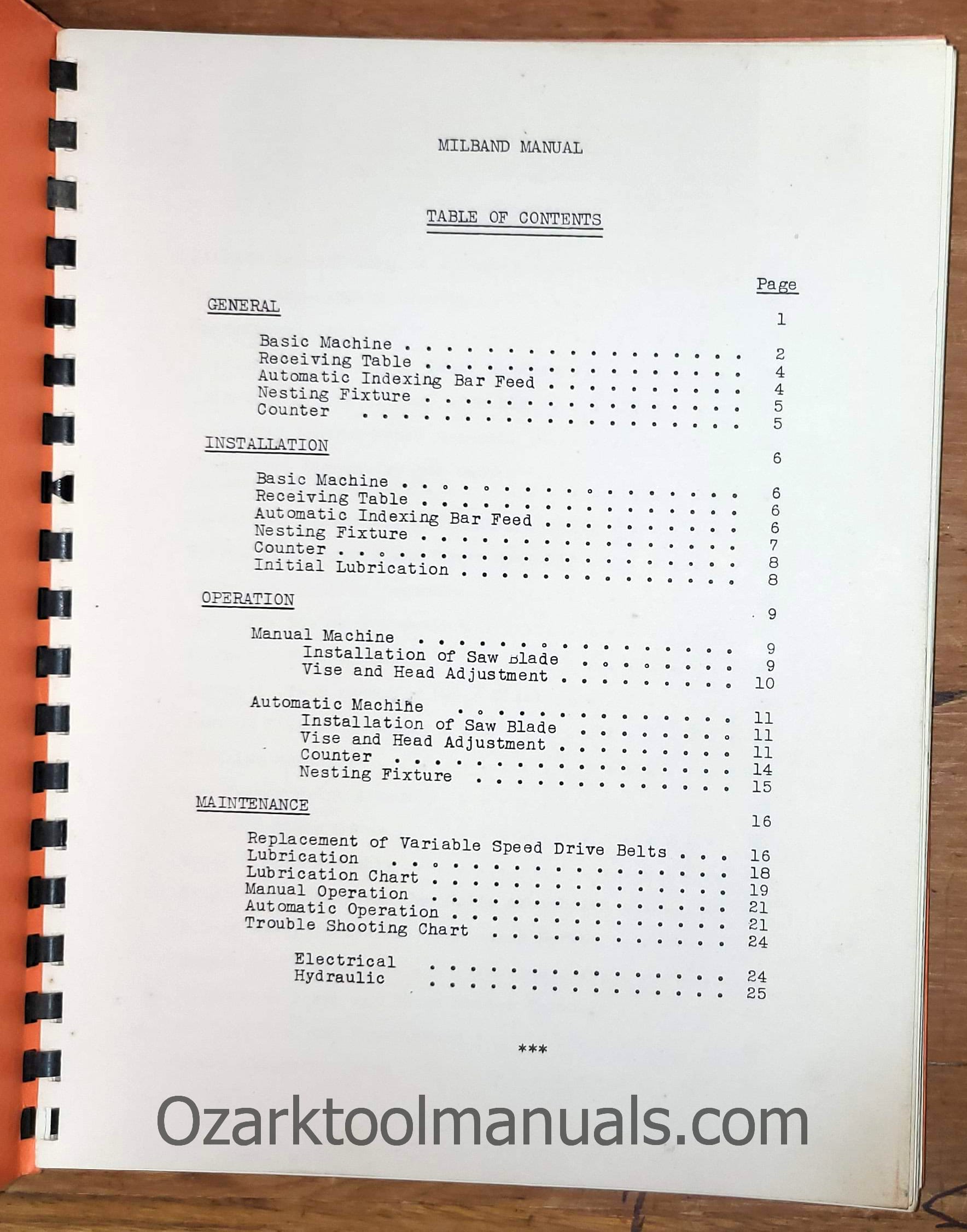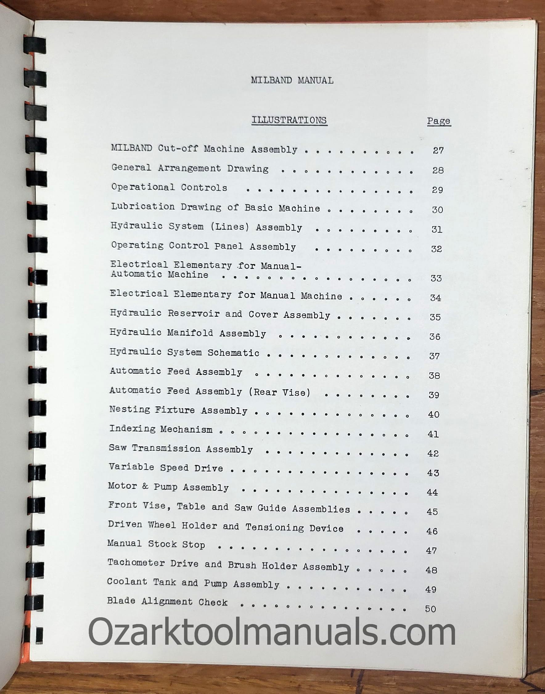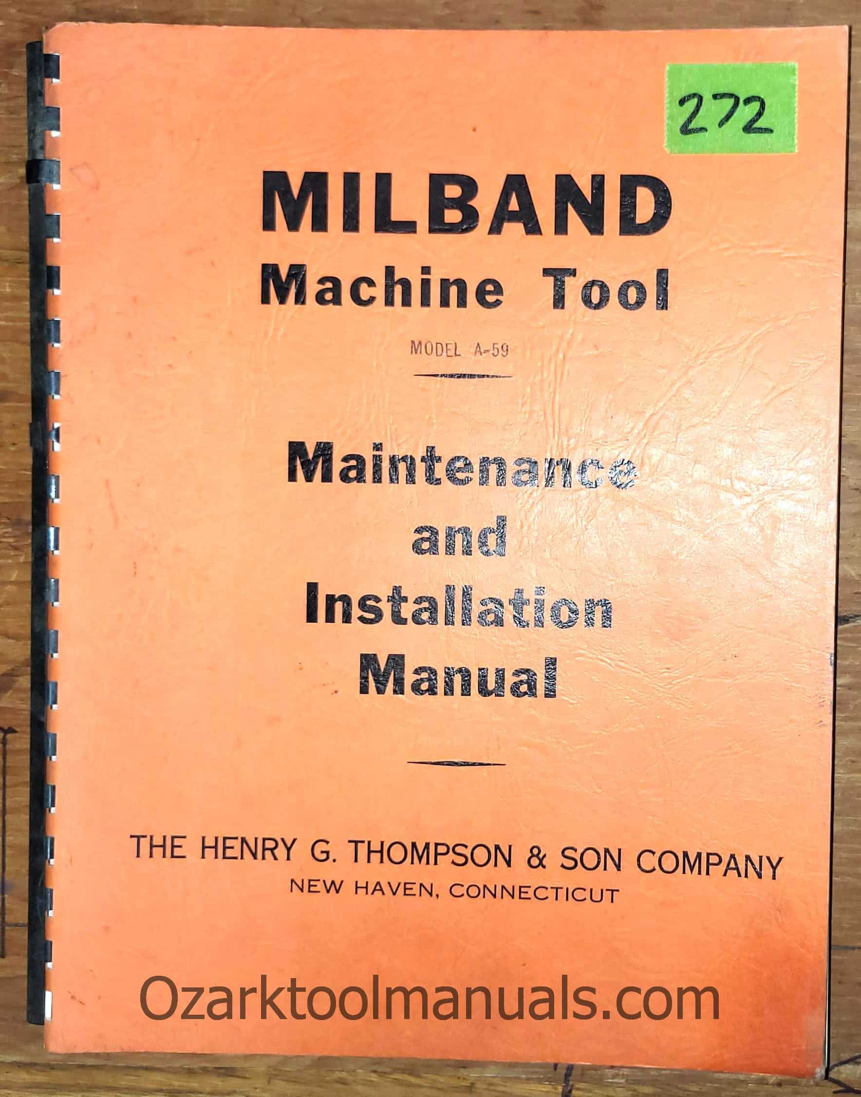 Milband Machine Horizontal Band Saw A-59 Henry G Thompson Maintenance Operation Parts Manual