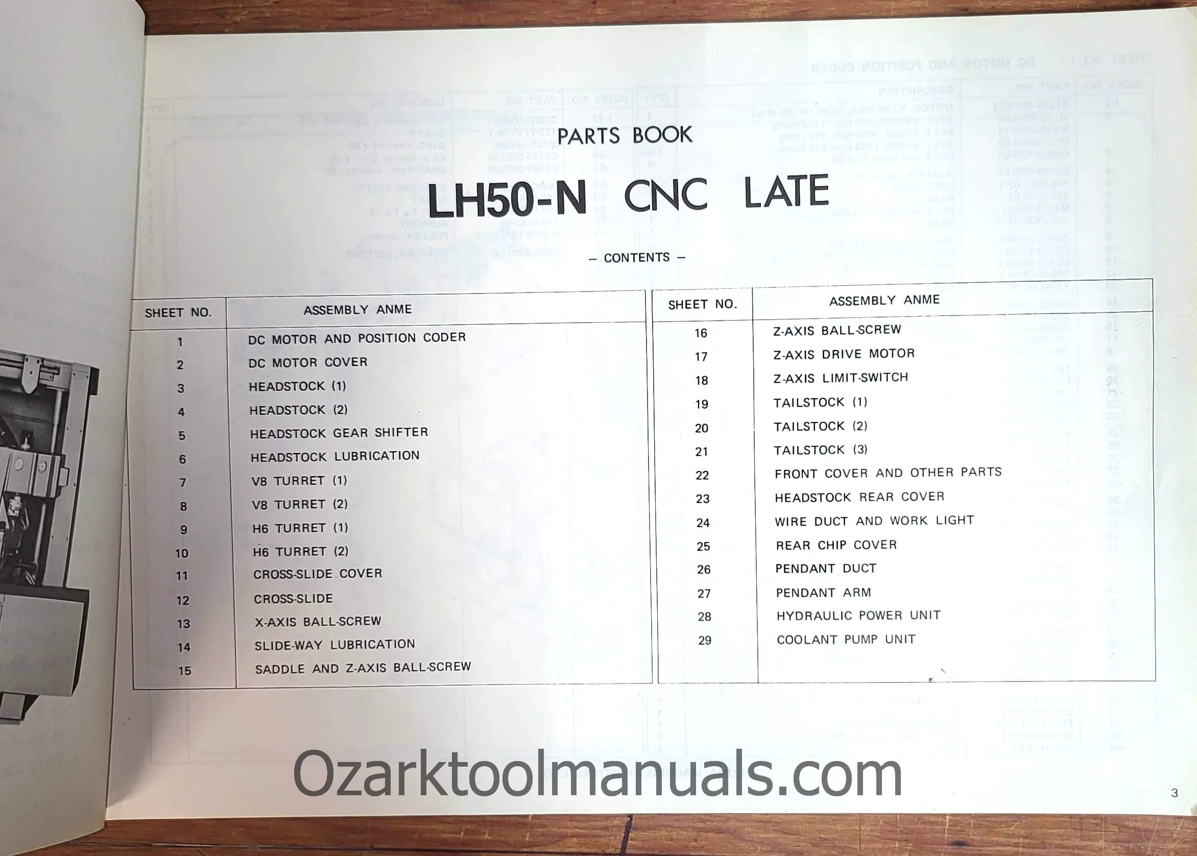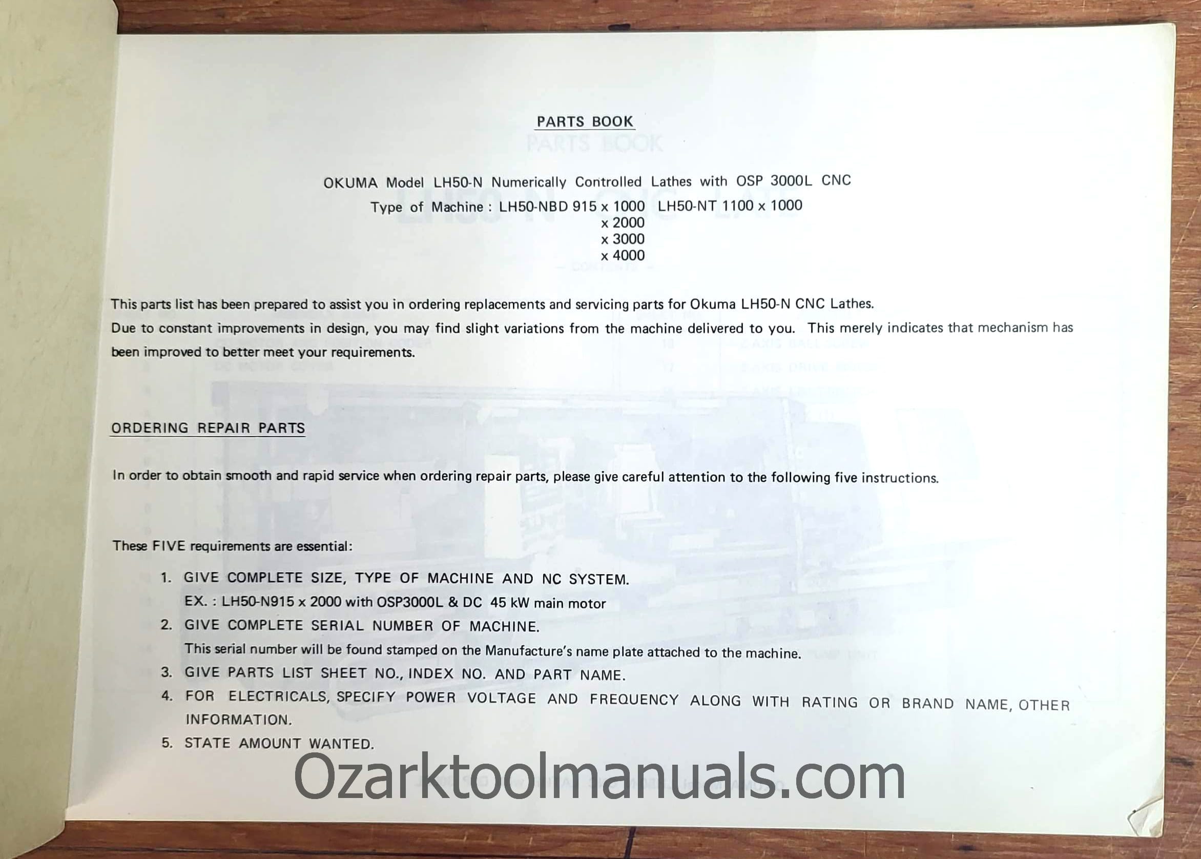 Okuma LH50-N CNC Lathe Service Parts Manual