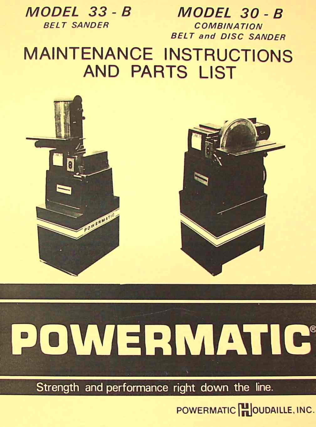 This is a reproduction, not a photocopy, of an original Powermatic M30-B and M33-B Maintenance Instructions and Parts Manual. This manual contains information on set up, adjustments, troubleshooting, and controls as well as a complete parts list and diagrams.