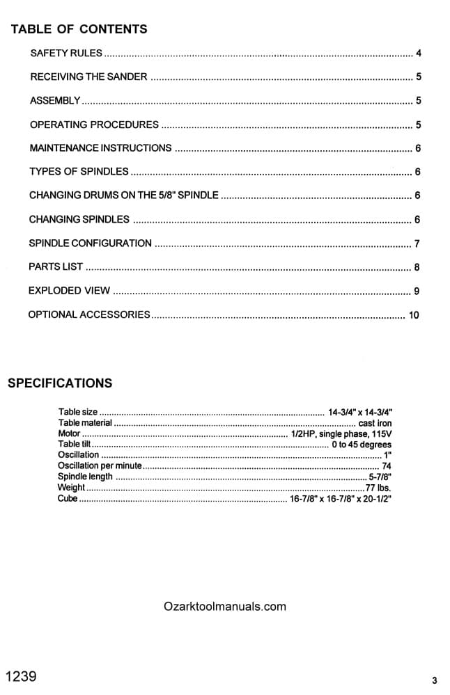 POWERMATIC Model 14 Oscillating Sander Instructions & Part Owner’s Manual