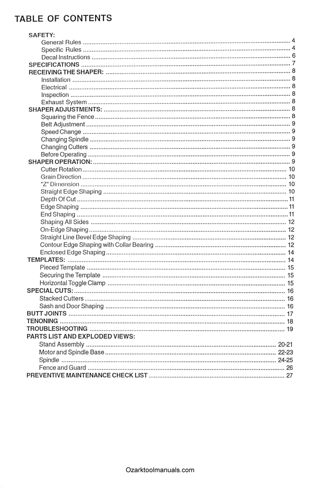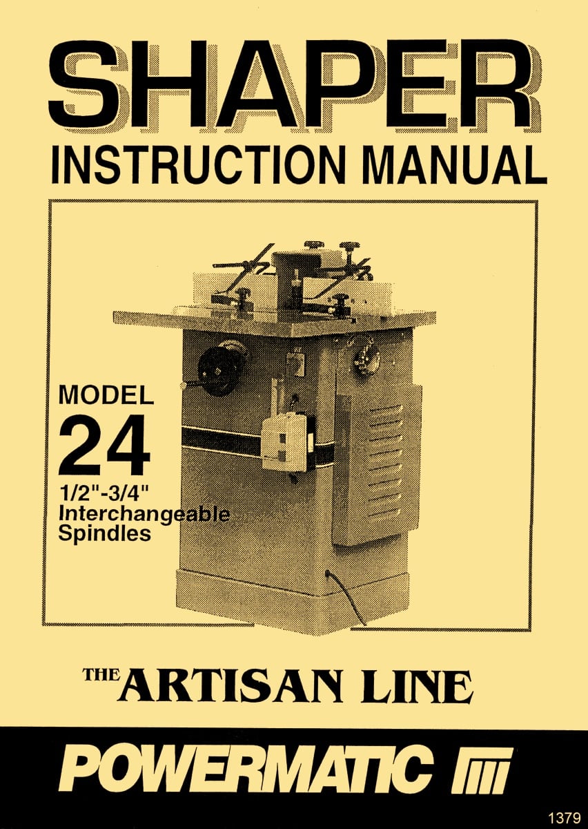 This is a reproduction, not a photocopy, of an original Powermatic Model 24 Wood Shaper Instruction and Parts Manual. This manual contains information on the wood shaper specifications, and instructions on how to properly set it up. The manual has good instructions with diagrams on how to make adjustments and like squaring the fence. It also contains instructions for changing the spindle and cutters. This Powermatic manual also contains a lot of good general information on how to proper use a wood shaper, and shows various cutting techniques. The manual includes a complete parts list and exploded view parts diagrams for this Powermatic M24 wood shaper.