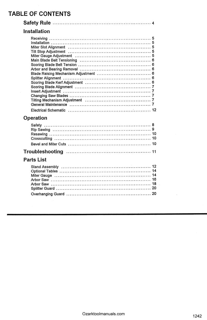 The manual above may help you operate and maintain your table or circular saw, but if you would like to learn more about properly tuning and using your table saw, I highly recommend you check out this book here: How to Tune-Up, Set-Up, and Use a Table Saw – The Missing Shop Manual. I have Personally used this book to set up table saws in my shop. It covers almost every topic you would want to know about in a lot more detail with pictures and illustrations than you standard table saw manual, like how to properly trim your blade to the table and more. Click on the link or the picture to read the description and learn more about this useful book. |