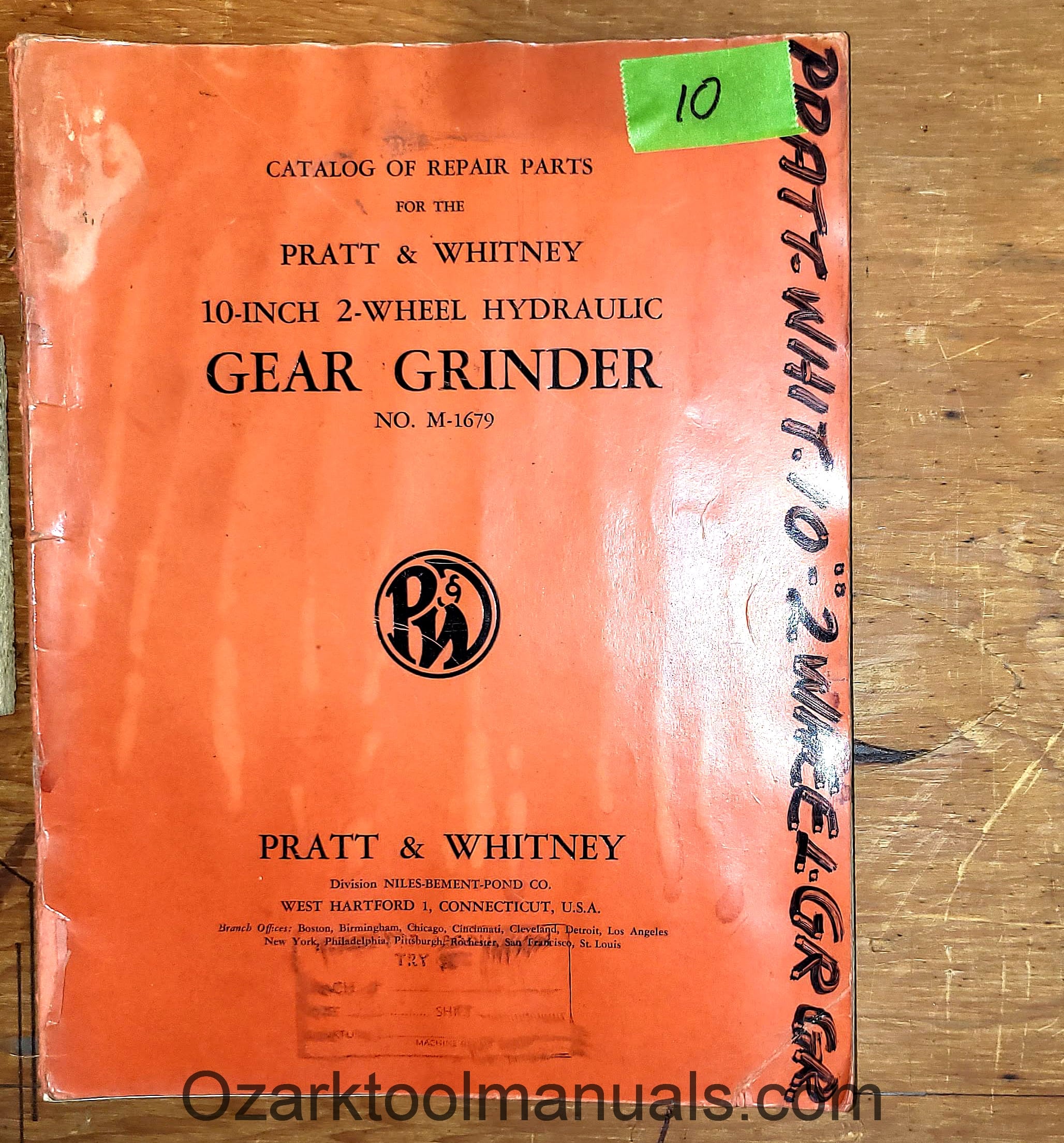 Pratt & Whitney 10-inch 2-Wheel Hydraulic Gear Grinder No. M-1679 Parts Manual