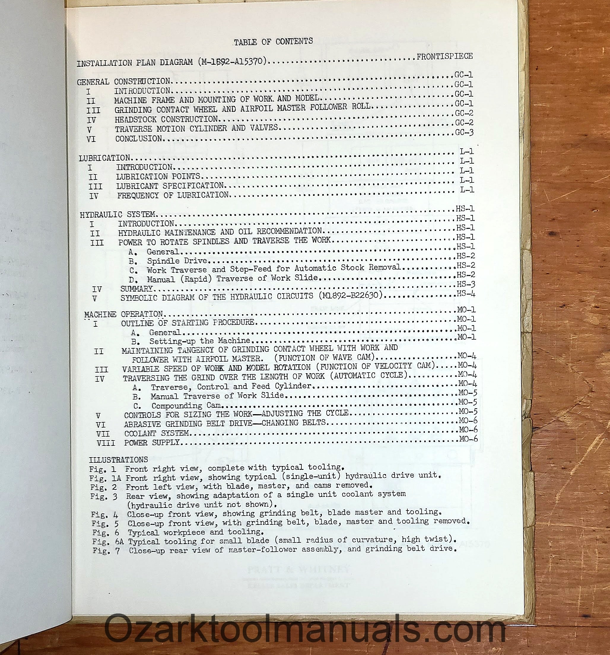 Pratt & Whitney Turbine Blade Airfoil Grinder Instructions Operator’s Manual