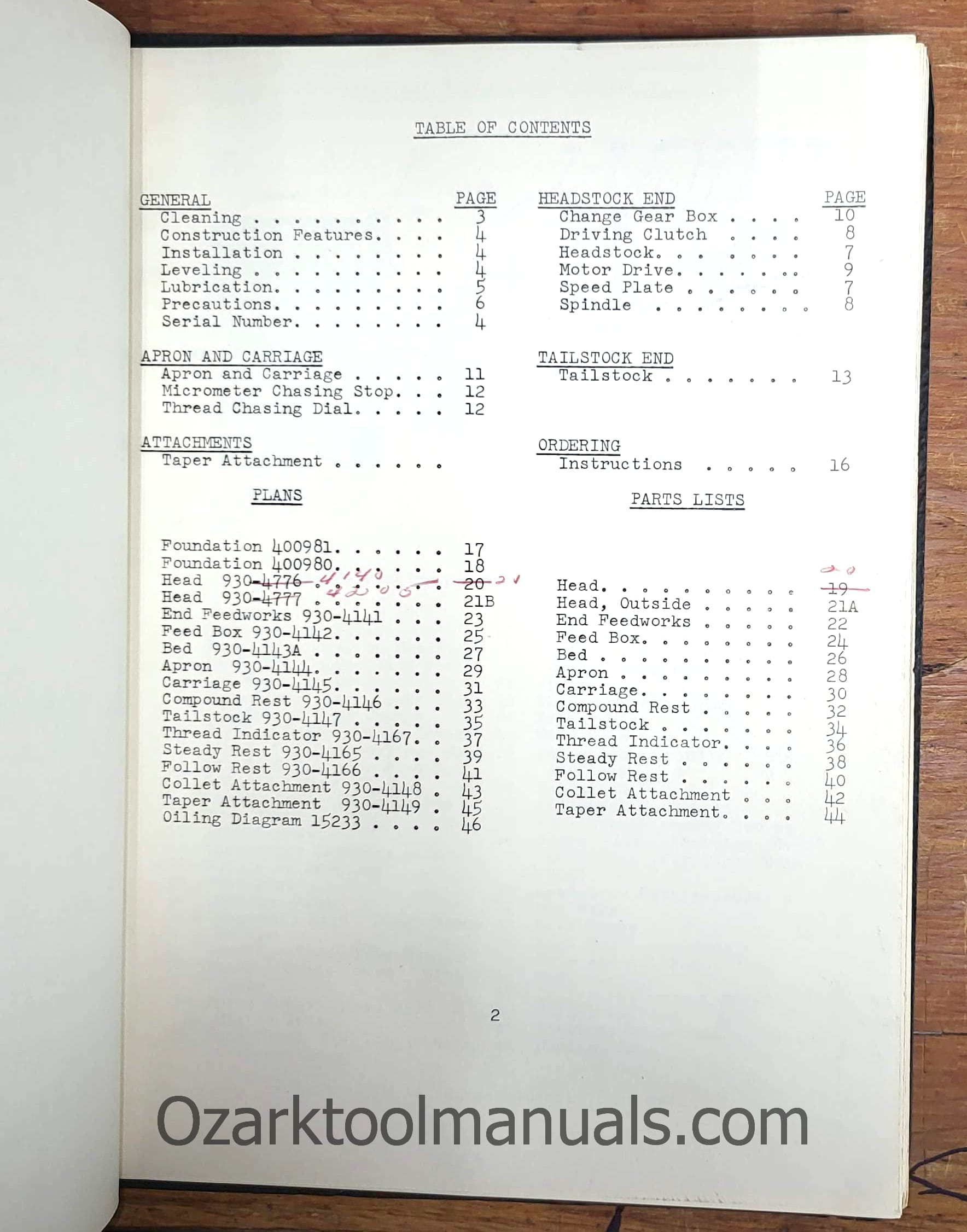 Reed Prentice 14″ 16″ Metal Lathe Operator Instruction Owners Parts Manual