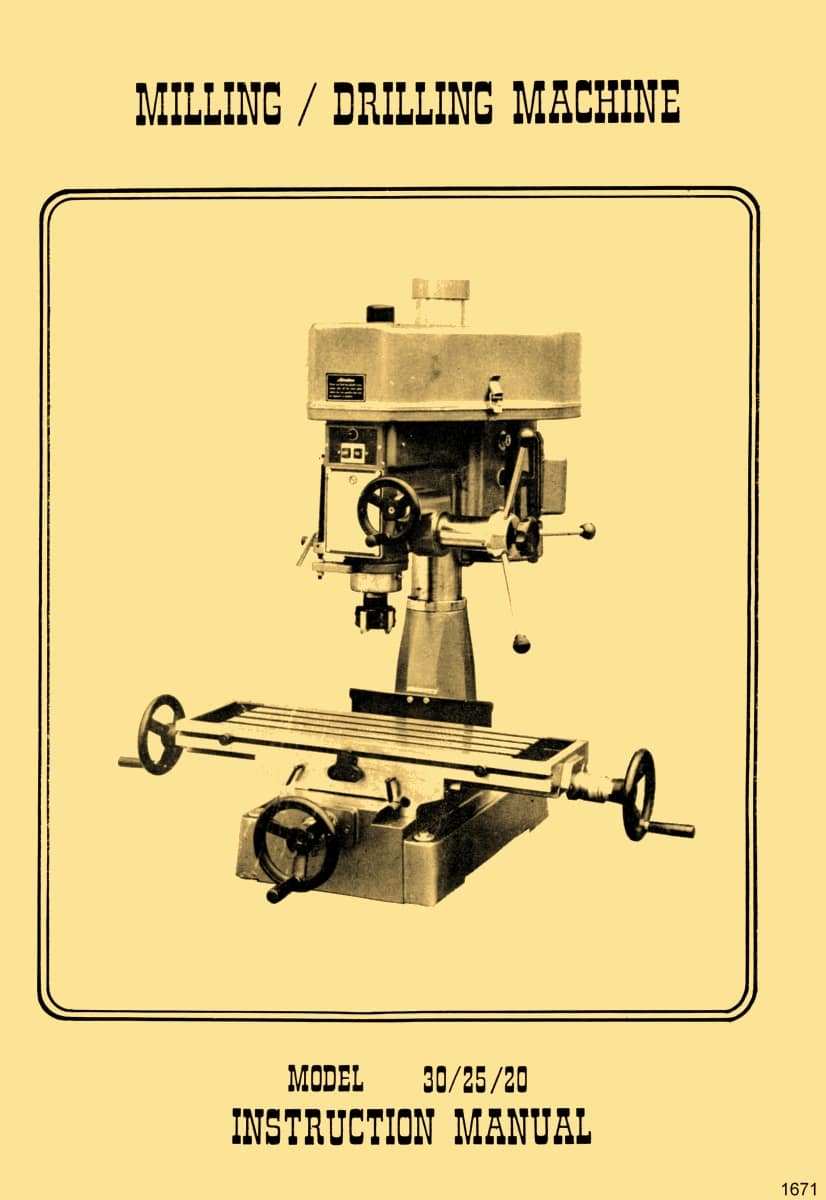 This is a reproduction, not a photocopy, of an original Asian Drill Milling Machine Operator’s Instructions and Parts Manual for models RF-20, RF-25, and RF-30. This mill was sold under a variety of different brands like, Rutland, Hafco, Grizzly G1005, and Axminster. This manual contains information on installation instructions, operating instructions, adjustments, motor speed pulley chart for both 3-pulley and 4-pulley models, tool removal, and a complete set of exploded view and cross-sectional view diagrams of all the parts with parts list and descriptions for these drill mills.