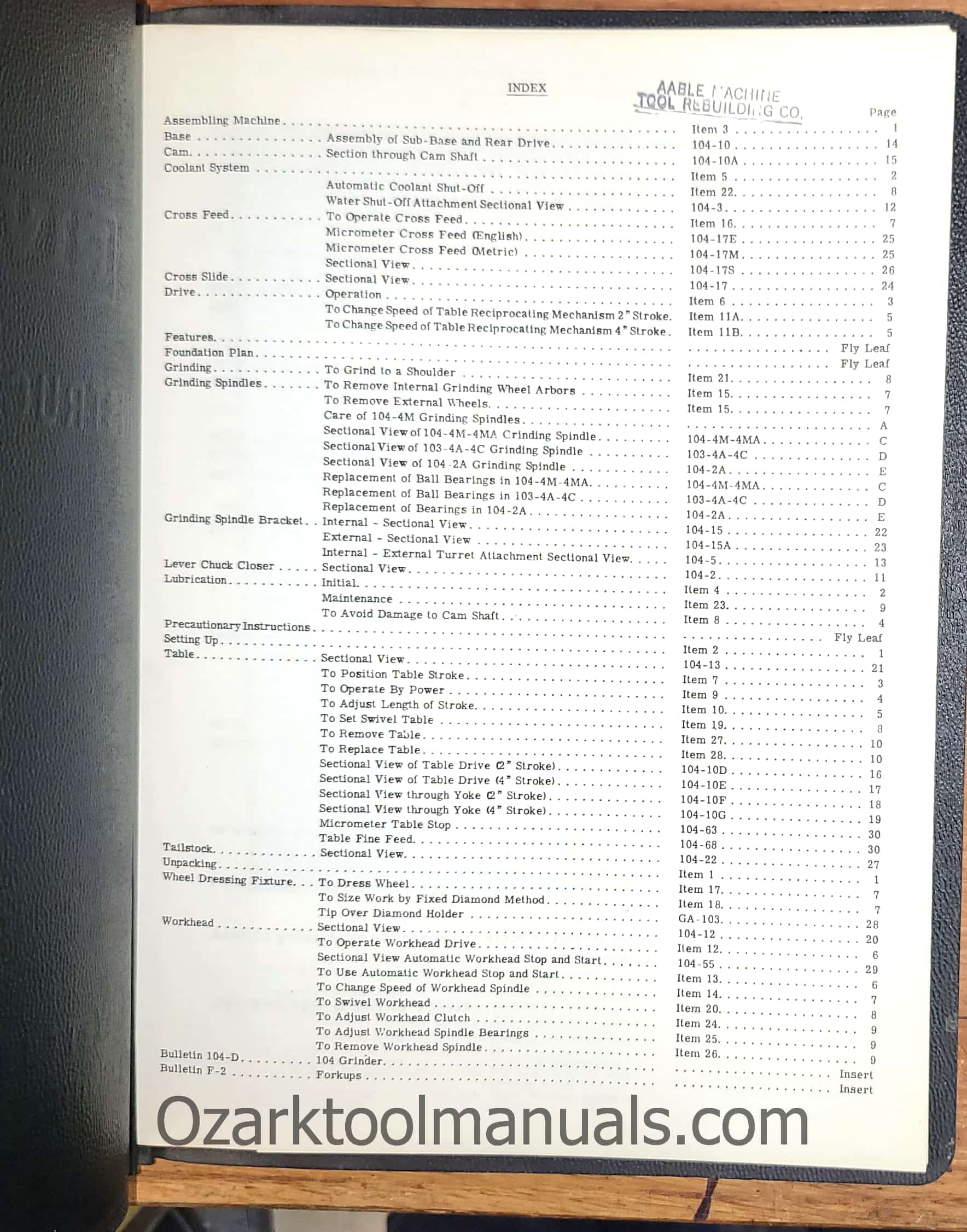 Rivett 104 Tool & Cutter Grinder Owners Instructions Parts Manual
