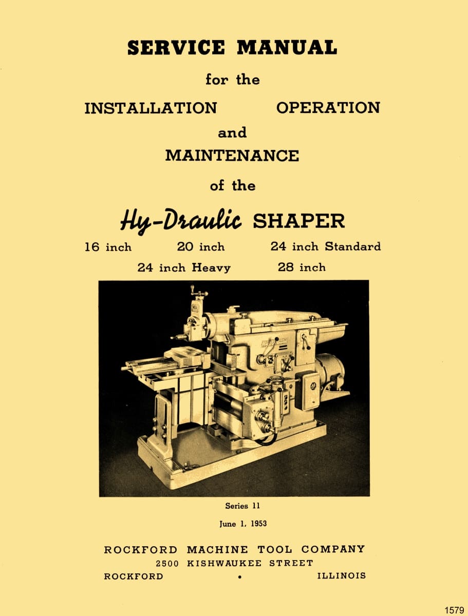 ROCKFORD 16″, 20″, 24″, 28″ Hy-Draulic Heavy Standard Metal Shapers Instructions Maintenance Parts Manual