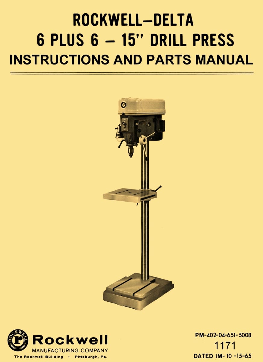 Rockwell-Delta 15-665 & 15-660 15″ Drill Press 6 Speed, 6″ Travel Instructions & Parts Manual