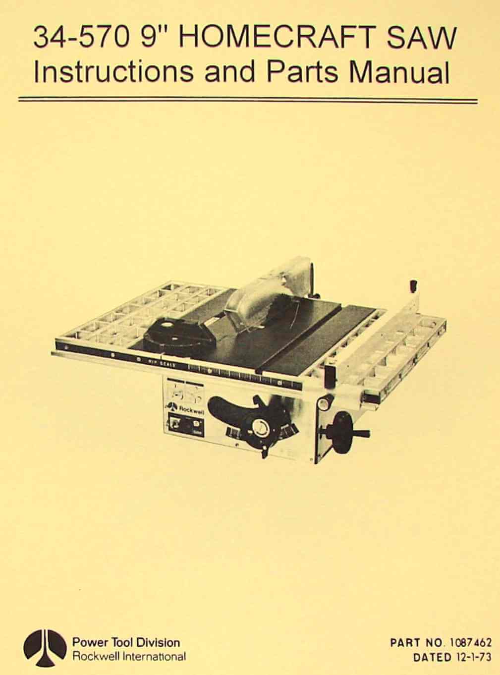 This is a reproduction, not a photocopy, of an original Rockwell-Homecraft 9″ Table Saw Operator’s and Parts Manual for 34-570. This manual contains information about set up, operating instructions, lubrication, adjustments, wiring diagram, and explosive view parts diagrams with parts list.