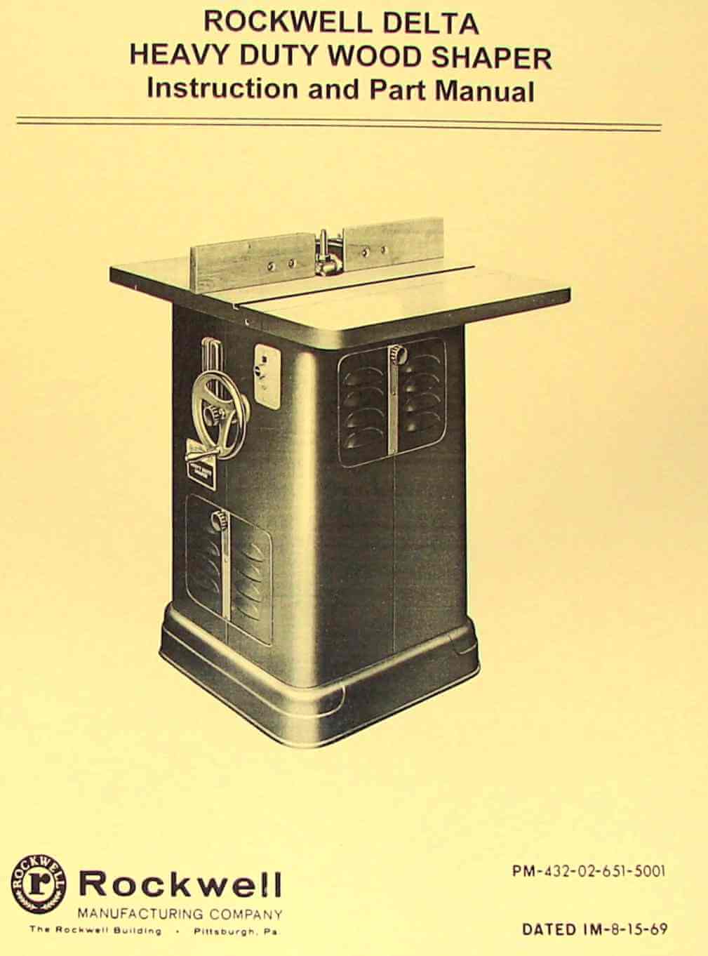 Rockwell-Delta Older Heavy Duty Wood Shaper 43-205 & 1340 Operator’s & Parts Manual