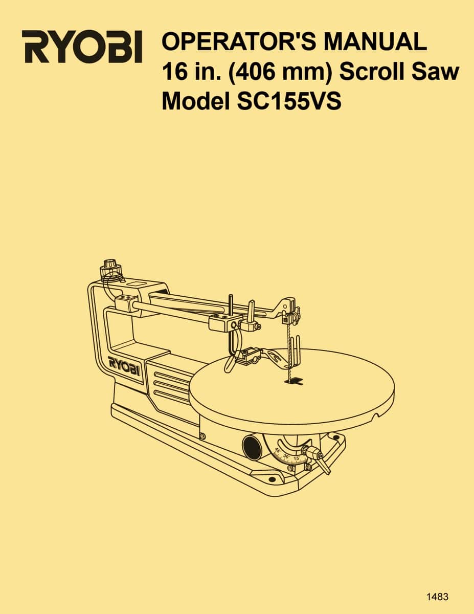This is a reproduction, not a photocopy, of an original Ryobi 16″ Scroll Saw Model SC155VS Owner’s, Operator’s and Parts Manual. This manual contains the scroll saw specifications, safety instructions, operating instructions, and maintenance. This Ryobi manual also has instructions on removing and installing blades. The manual includes a troubleshooting guide, and explosive view diagrams of all the parts with parts list and descriptions for this Ryobi 16″ scroll saw.