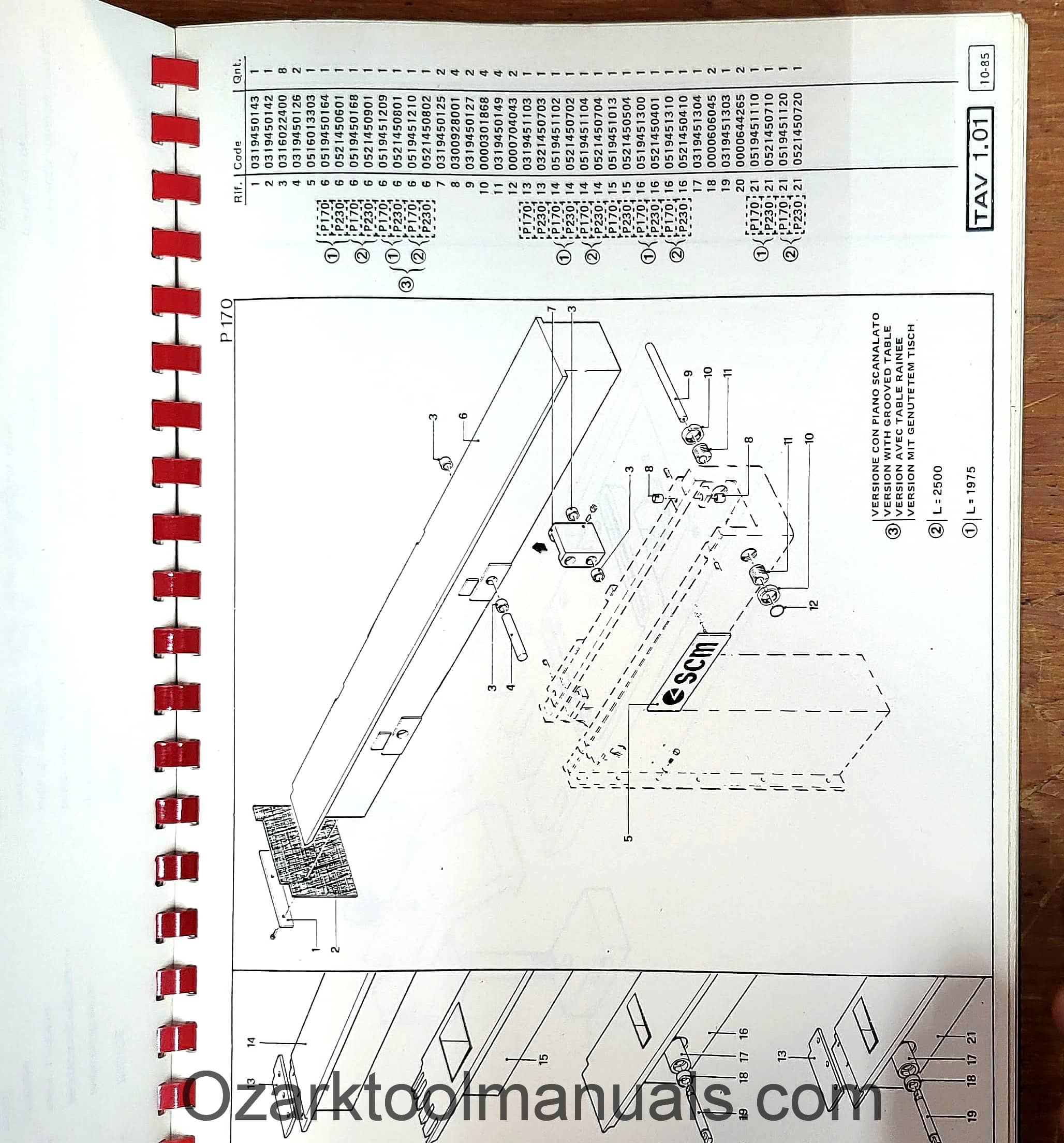 SCM P-170 P-230 Feed Through Moulder Parts Manual