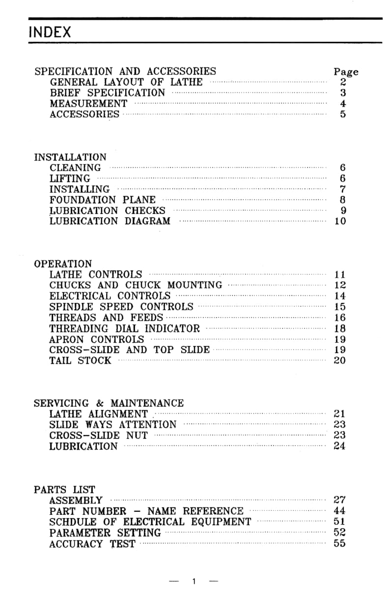 This is a reproduction, not a photocopy, of an original Sharp 1224VS, 1236VS, and 1340VS Metal Lathes Operating Instructions and Parts Manual. This lathe manual contains lathe specifications, installation instructions, proper lubricating instructions, and the correct operating procedures. It includes all the threading gear charts and the electrical wiring diagrams schematics. This manual also does a good job explaining how to align and trim this lathe, especially for an Asian manual. The manual contains clear explosive view diagrams of all the parts with parts list and descriptions for this Sharp metal lathe.