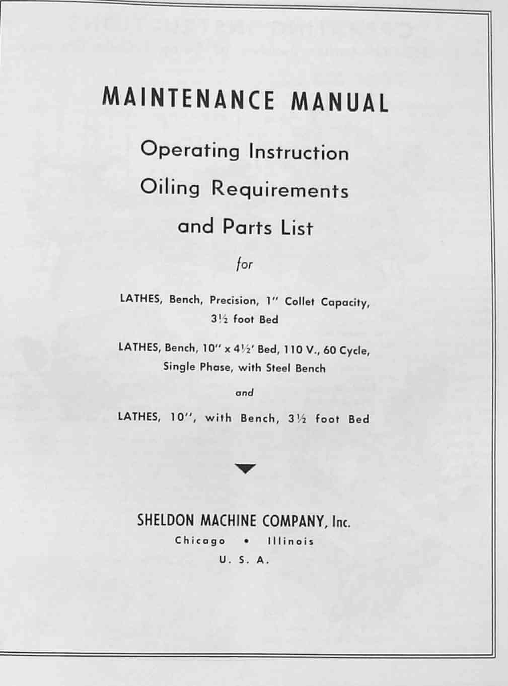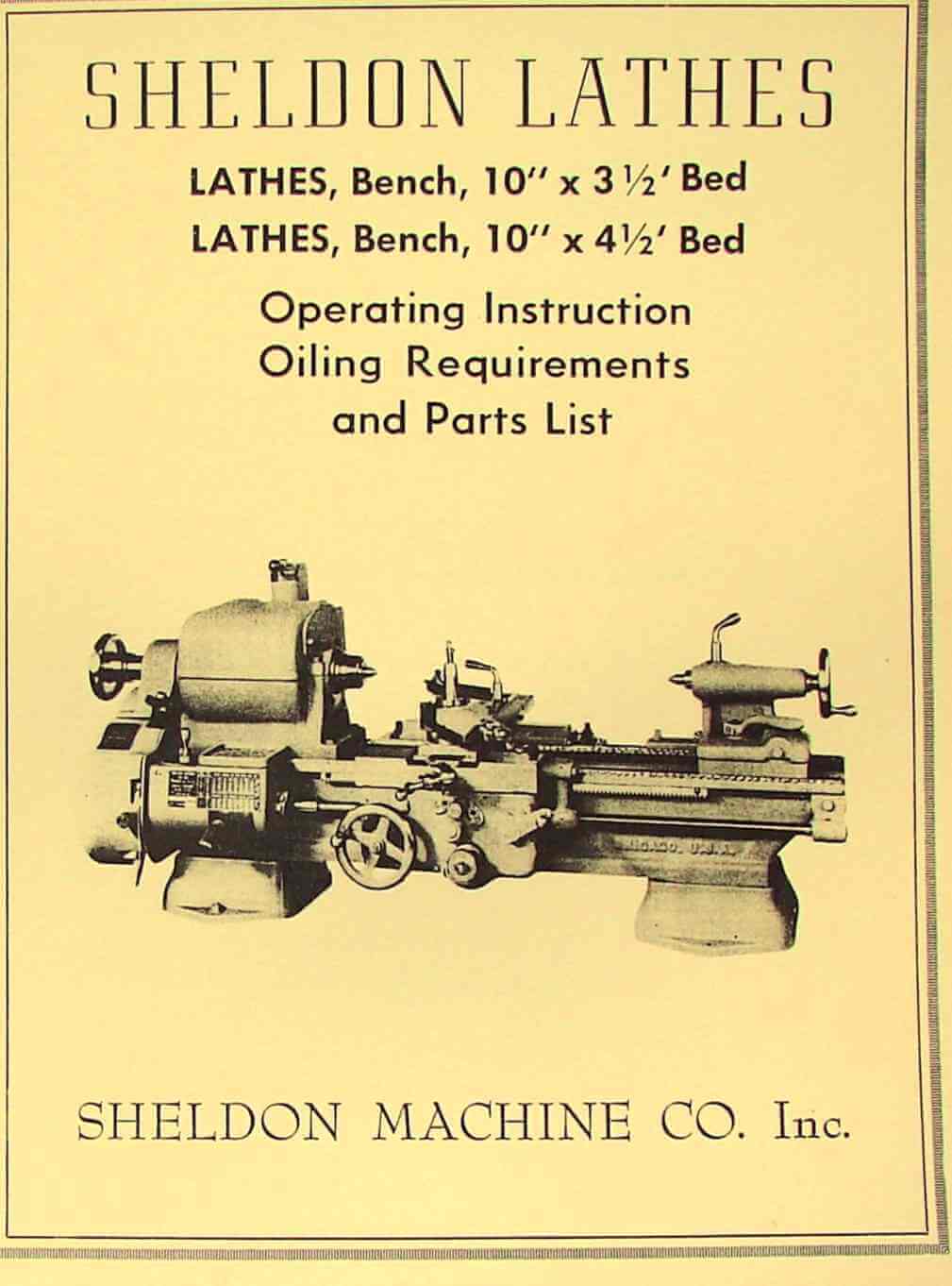 This is a reproduction, not a photocopy, of an original Sheldon 10″ Lathe Operation and Parts List Manual. This manual contains 6 pages on how to properly operate the different parts of this lathe. It also shows lots of pictures of the inner workings of the parts while describing their operation and how to adjust them. This manual also has two pages on proper oiling instructions, and the last four pages are parts list.