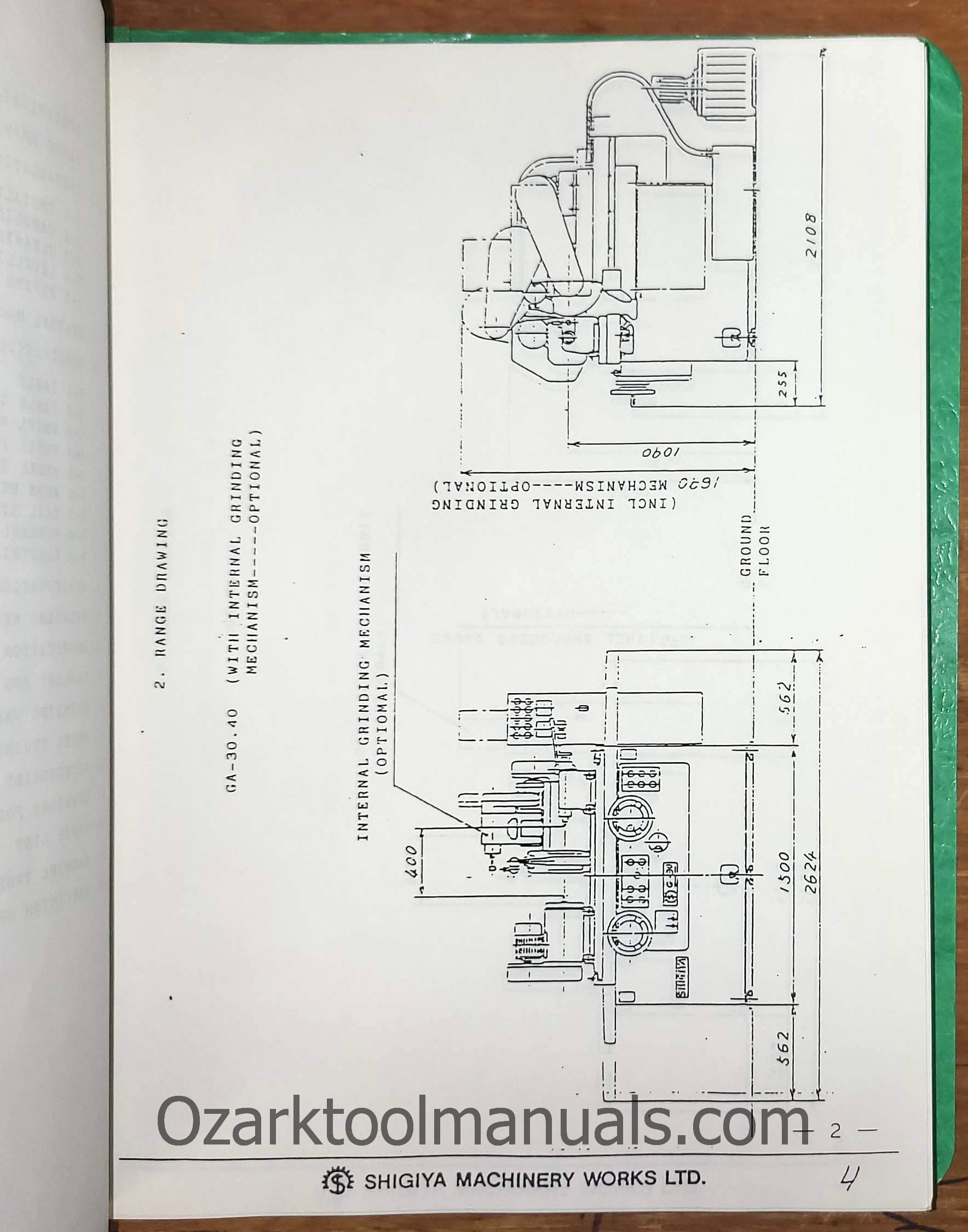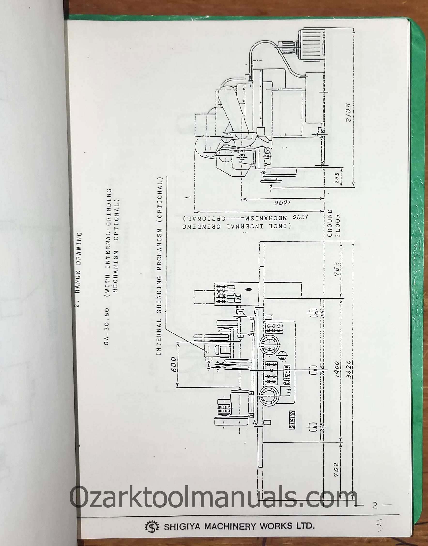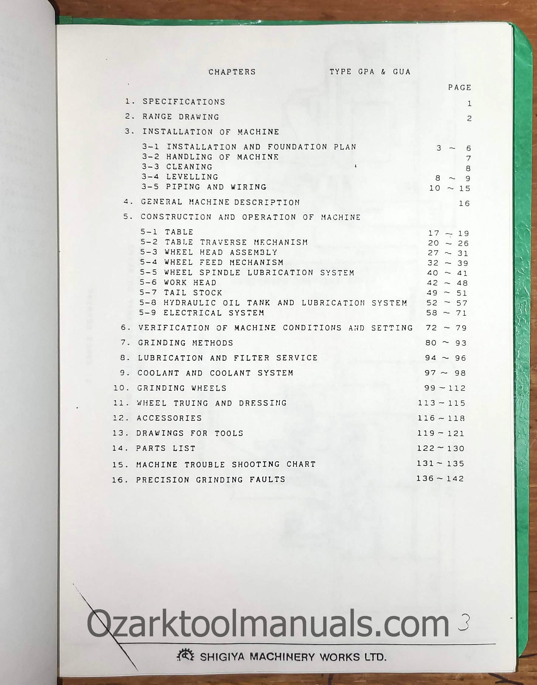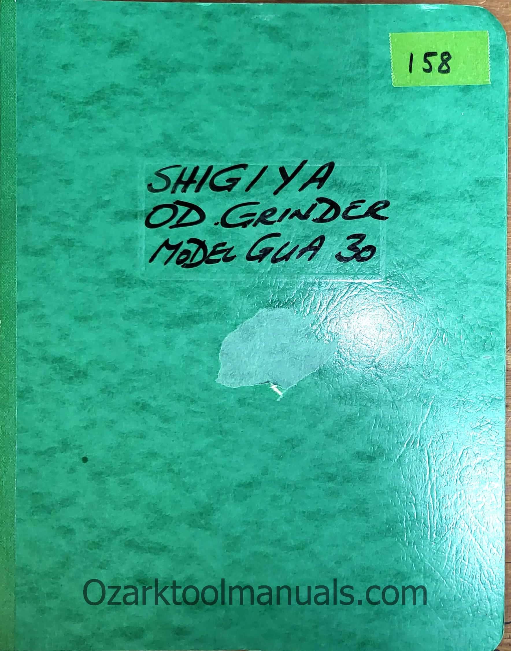 Shigiya GPA GUA OD Cylindrical Grinder Operator Instructions Parts Manual