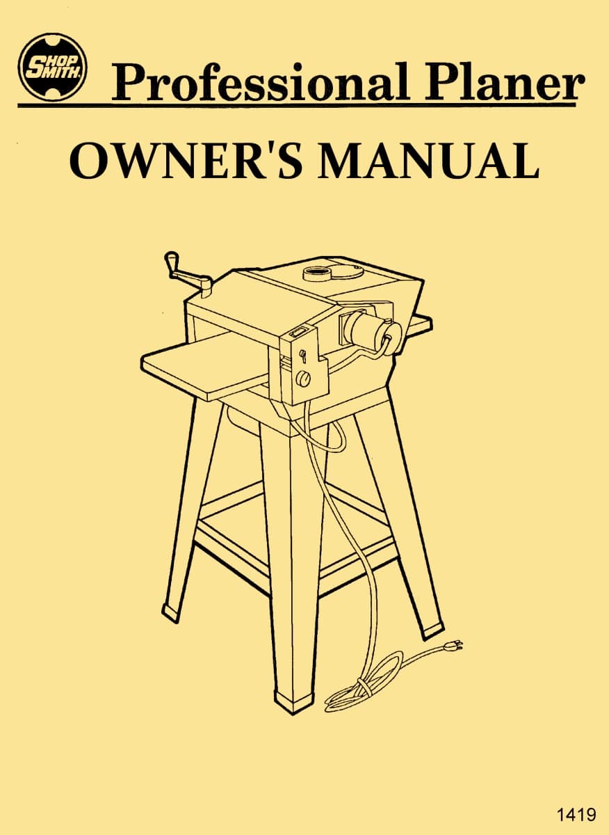 This is a reproduction, not a photocopy, of an original Shopsmith 12″ Professional Planer Owner’s, Instructions, Parts Manual. This is a very in-depth manual on how to setup and operate this Shopsmith planer. It contains good instructions on how to properly replace and adjust the knives. It covers a lot of other maintenance items like how to adjust the feed rollers and chains. The manual covers some helpful wood planing tips, and has a complete set of explosive view diagrams of all the parts for this Shopsmith 12″ Professional Planer.