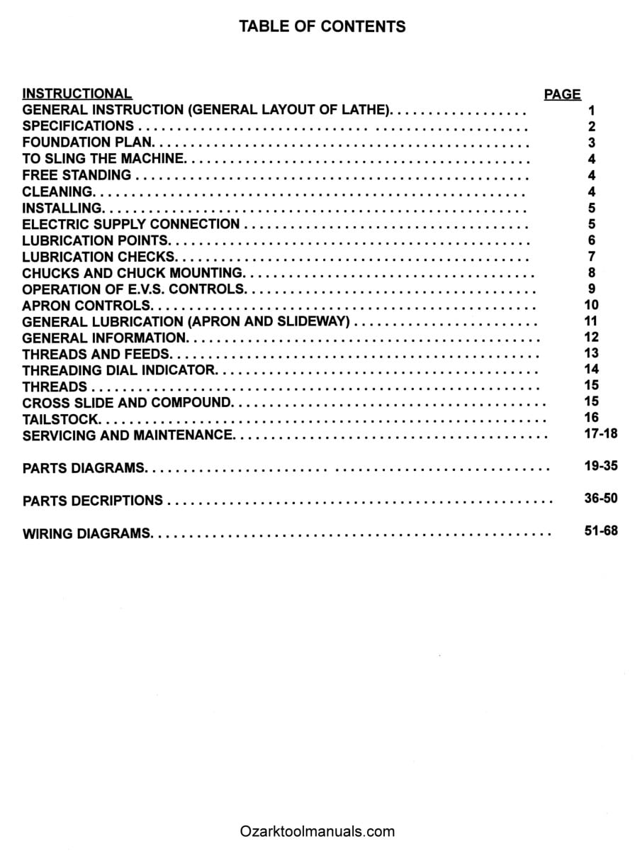 This is a reproduction, not a photocopy, of an original 1995 South Bend 14″ x 40″ and 16″ x 60″ Variable Speed Metal Lathe Operation & Maintenance Parts Manual for models 14-40 E.V.S. and 16-60 E.V.S. These are the older models before Grizzly’s version. This manual contains the lathe specifications, lifting and installation instructions, proper operating and lubrication chart and instructions. There are copies of all the feed, speed, and thread pitch charts. It also has the electrical wiring diagram schematic. There is a complete set of clear cross-sectional view diagrams of all the parts with parts lists and descriptions.
