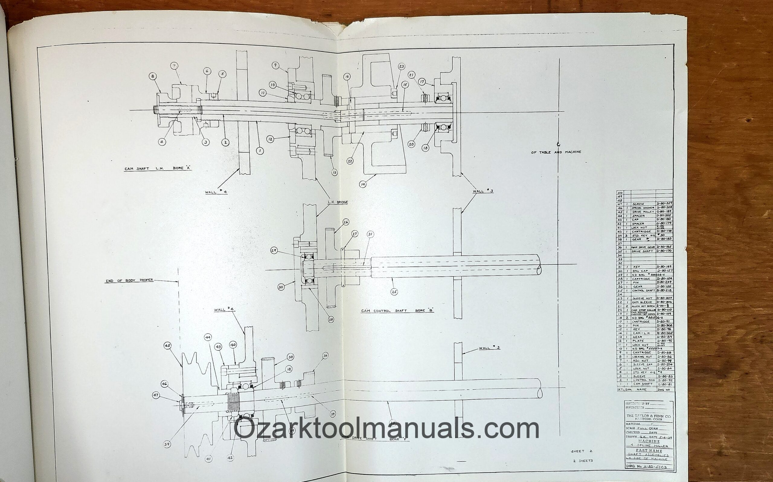 Taylor & Fenn Co. M-80 4-inch Duplex Spline Miller Parts Manual