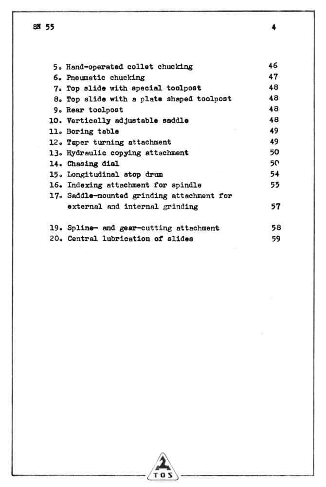 TOS SN55 Engine Metal Lathe Owner’s Instructions and Parts Manuals