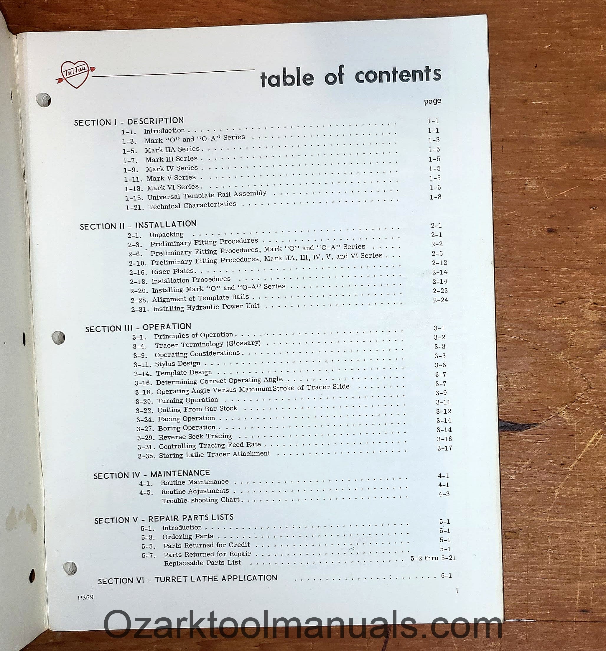 True-Trace Pivot Type Lathe Tracer Attachment Operation Maintenance Parts Manual