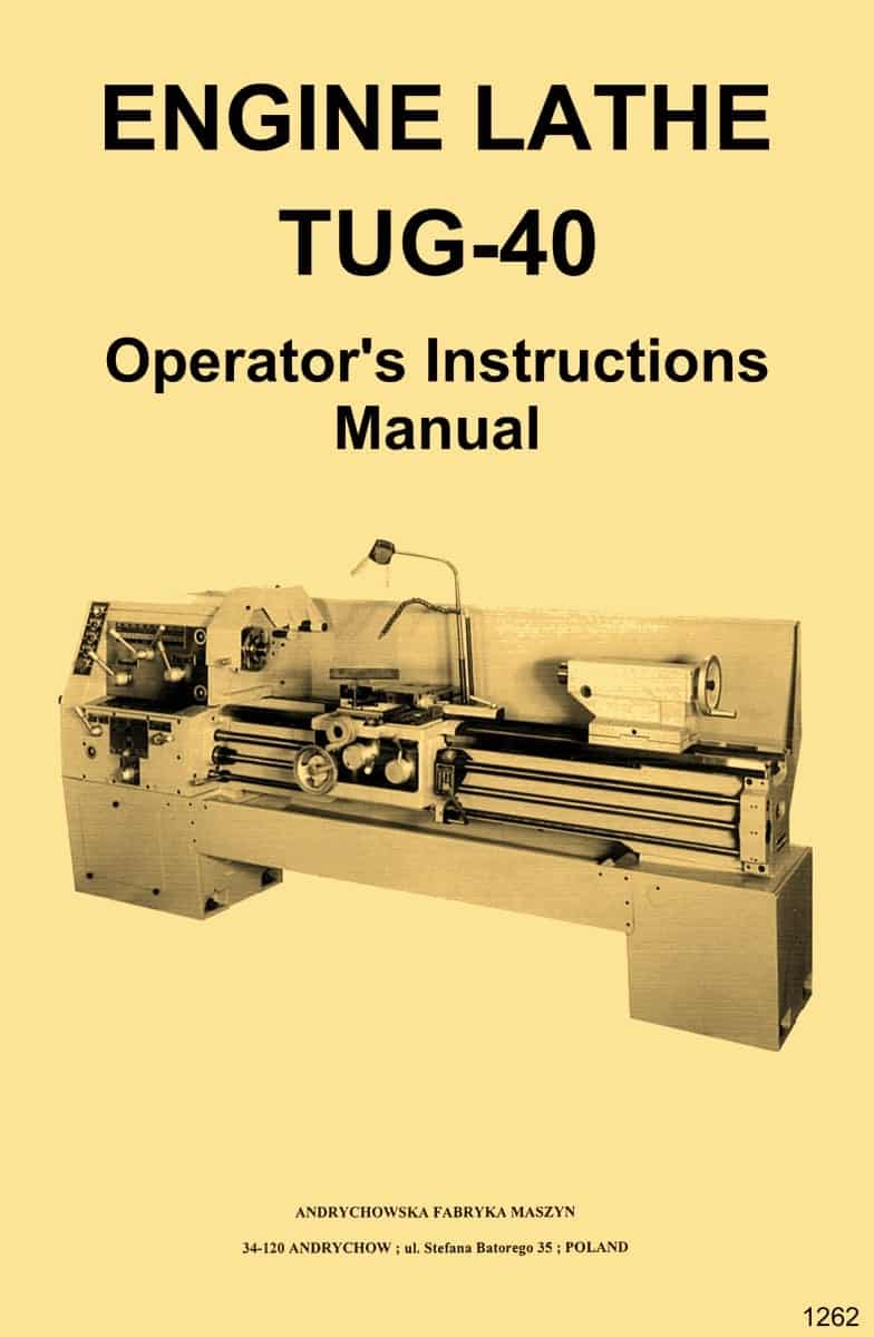 This is a reproduction, not a photocopy, of an original Andrychow Polamco TUG-40 Engine Lathe Operating Instructions Manual. This manual covers the later 1,600 RPM versions and not the older 1,400 RPM versions. These lathes were sold under many different names including Toolmex and Famot. This lathe manual contains information about the lathe specifications, installation instructions, maintenance schedules, lubricating instructions, proper operating instructions, and instructions on making various adjustments. The manual has wiring diagrams, and the threading charts.