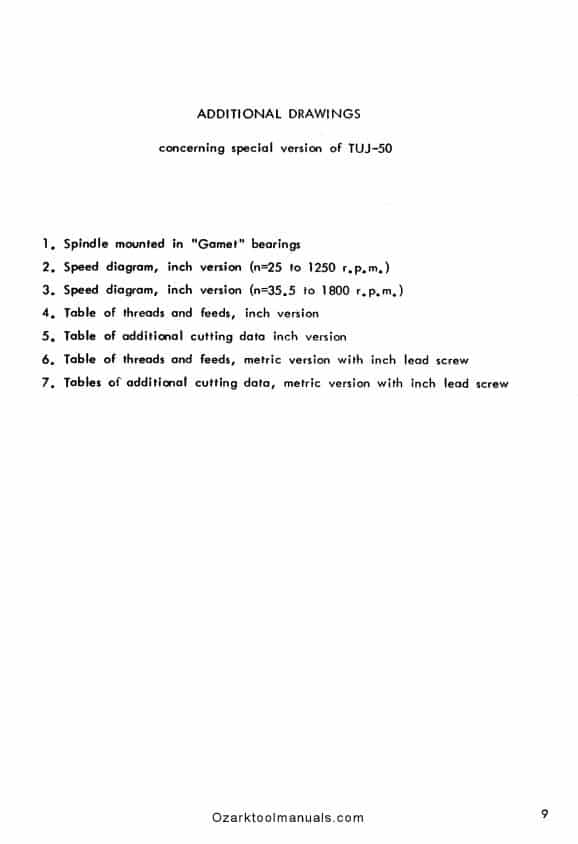 This is a reproduction, not a photocopy, of an original Polish Ponar-Tarnow Metalexportย TUJ-50 Engine Metal Lathe Operating Instructions Manual. These metal lathes were made in Poland, and sold under many different names including Metalexport and Famot depending on how they were imported. This lathe manual contains information about the lathe specifications, installation instructions, maintenance schedules, lubricating instructions, proper operating instructions, and instructions on making various adjustments. The manual has wiring diagrams, and the threading charts for the TUJ-50 metal lathes. Please see the index pictured above, and contact us with any questions.