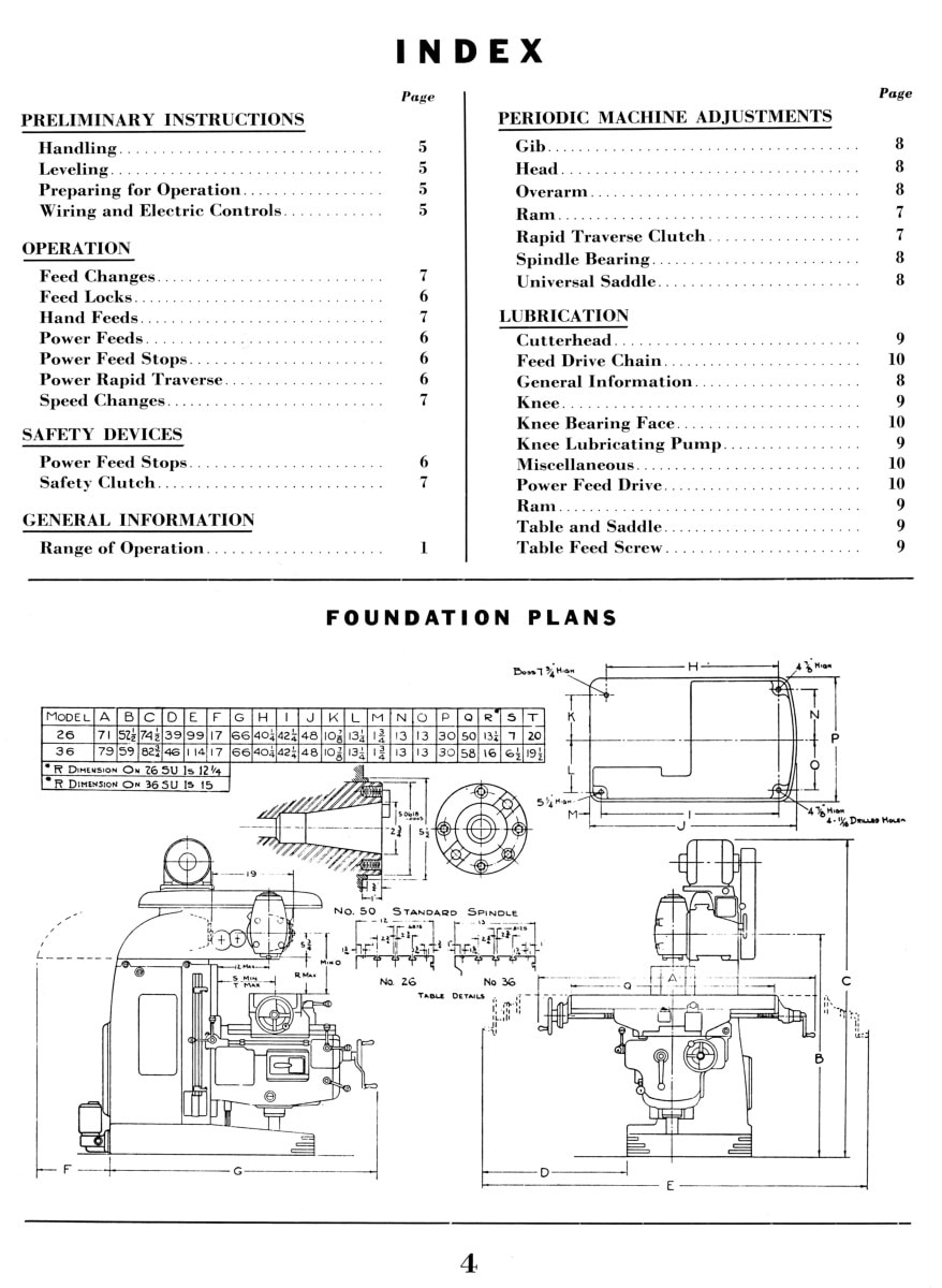 VAN NORMAN 26, 26SU, 36, 36SU Milling Machine Operator Service Parts Manual