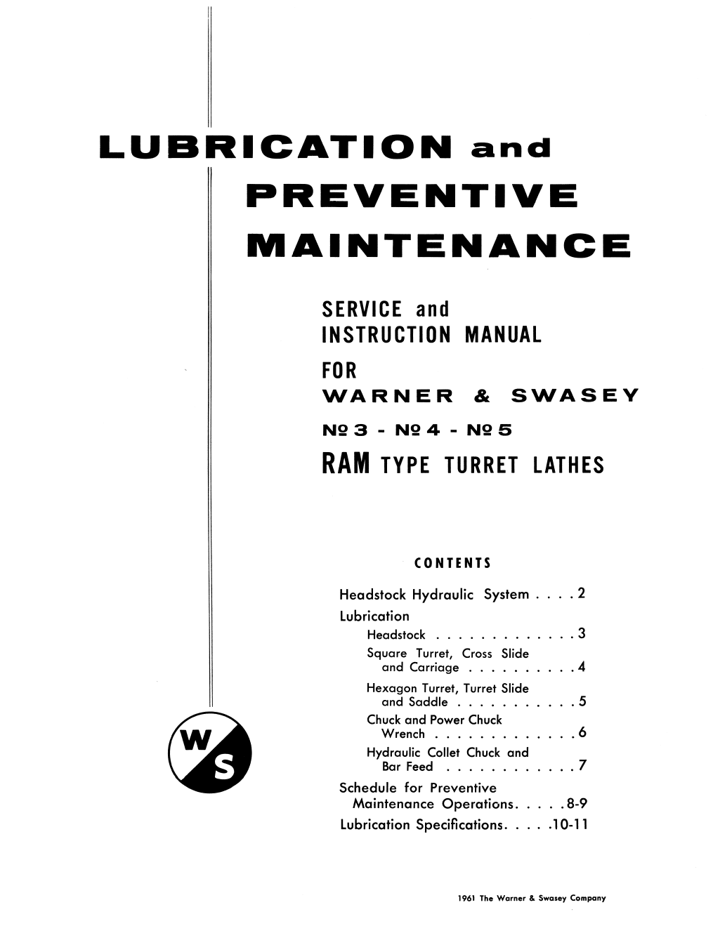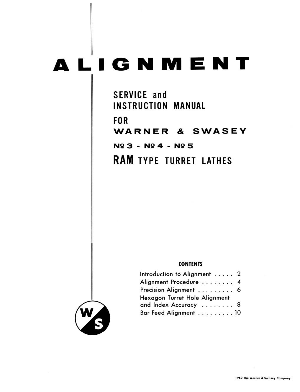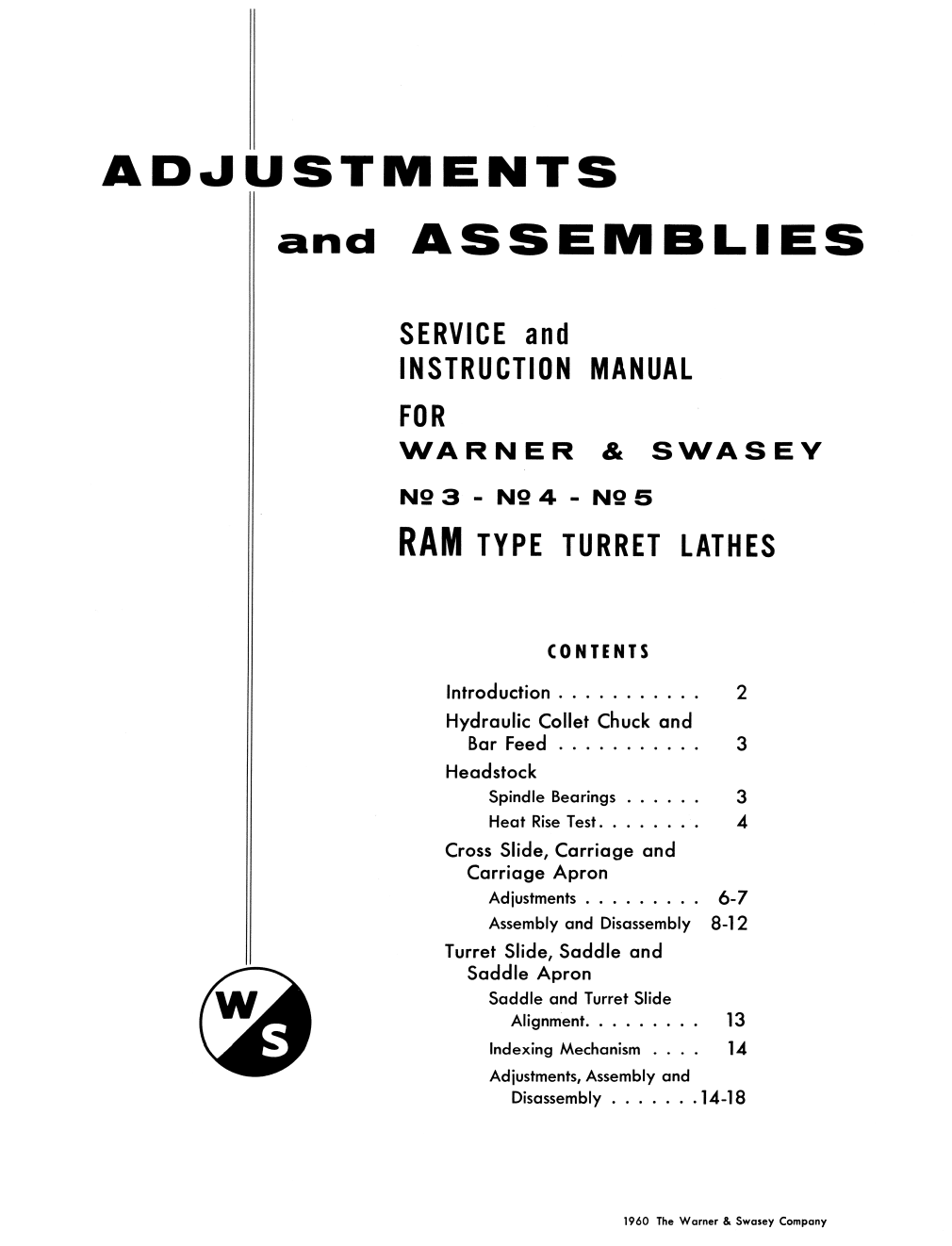 This is a reproduction, not a photocopy, of an original Warner Swasey No. 3, No. 4, No. 5, Geared Head Ram Type Turret Lathe Service and Instructions Manual. This manual covers the newer models which include M-2200, M2240, M-2250, and M-2770.