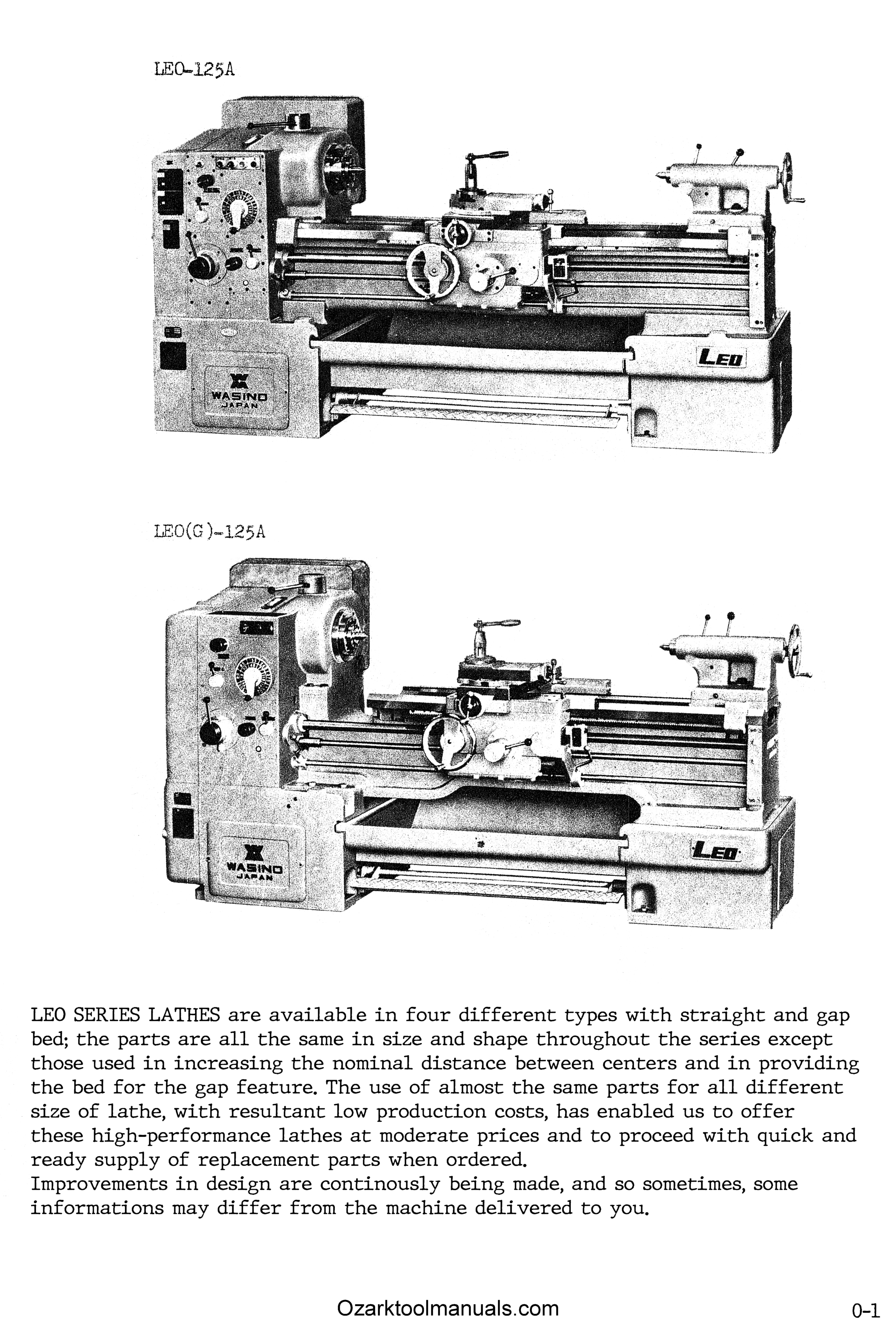 Wasino LEO-80A 100A 125A 150A Metal Lathe Instruction Service Manual