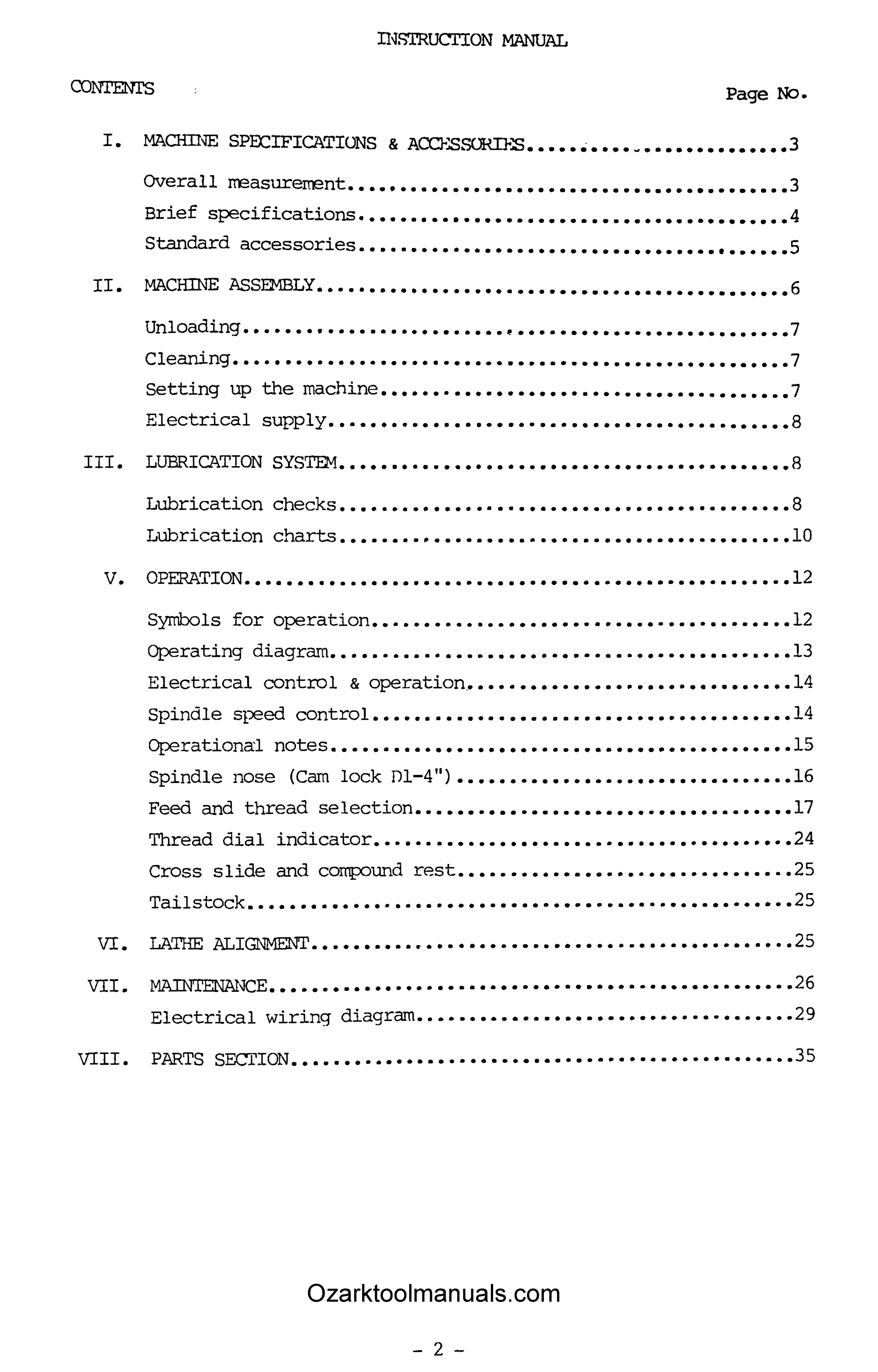 This lathe manual contains lubrication instructions, operating instructions, maintenance and adjustments, and threading diagrams. The manual also has cross-sectional view diagrams and parts list with descriptions for these metal lathes. It also contains wiring diagram and schematics for these Weily metal lathes.