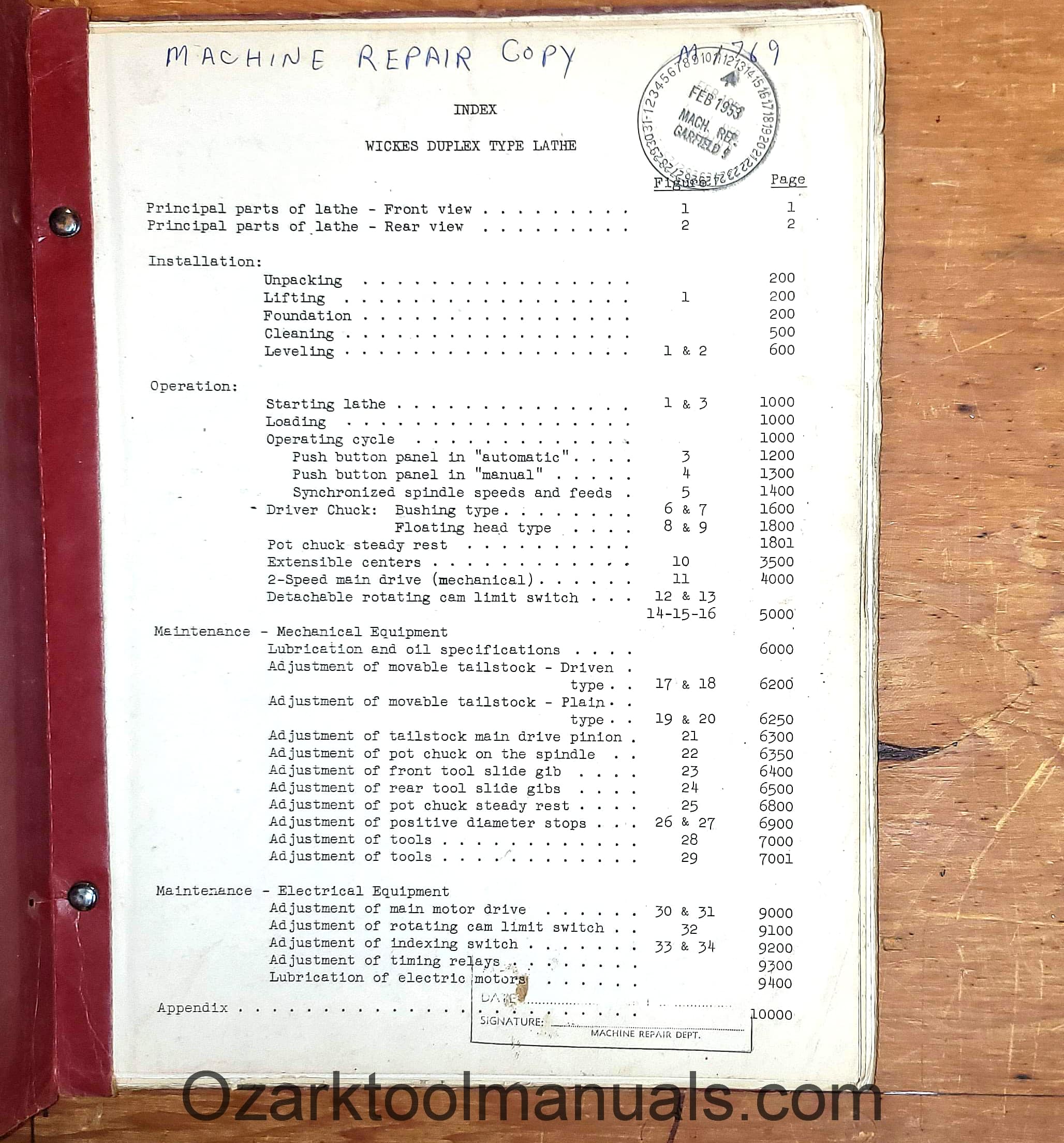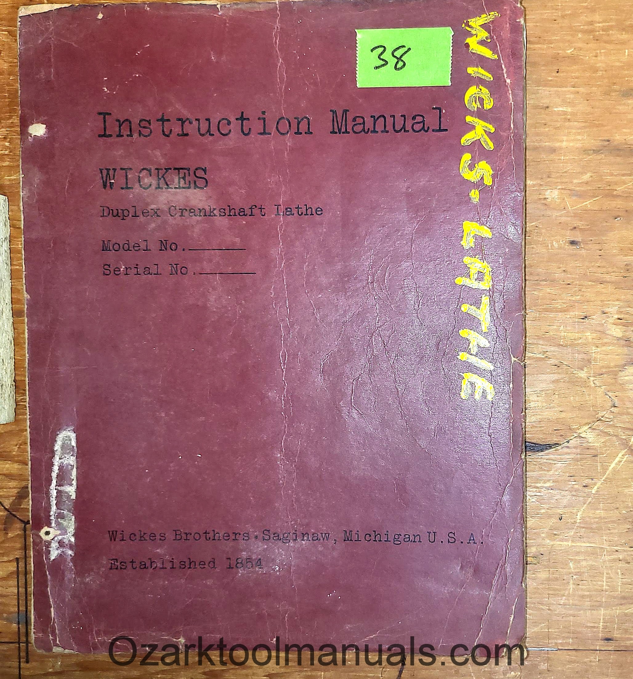 Wickes Brothers Duplex Crankshaft Lathe Instructions Maintenance Manual
